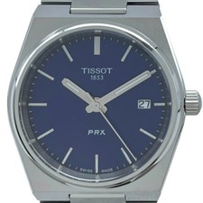 TISSOT PRX T137410 Quartz Navy Watch with Date Display Leather Strap Used
