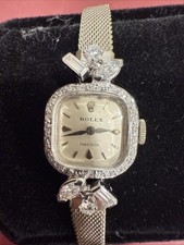 Antique ROLEX Ladies Cocktail 18K White Gold Factory Diamonds Case 16 mm Watch
