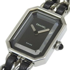 CHANEL Premiere L H0451 Black Dial SS Stainless Steel Leather USED Watch
