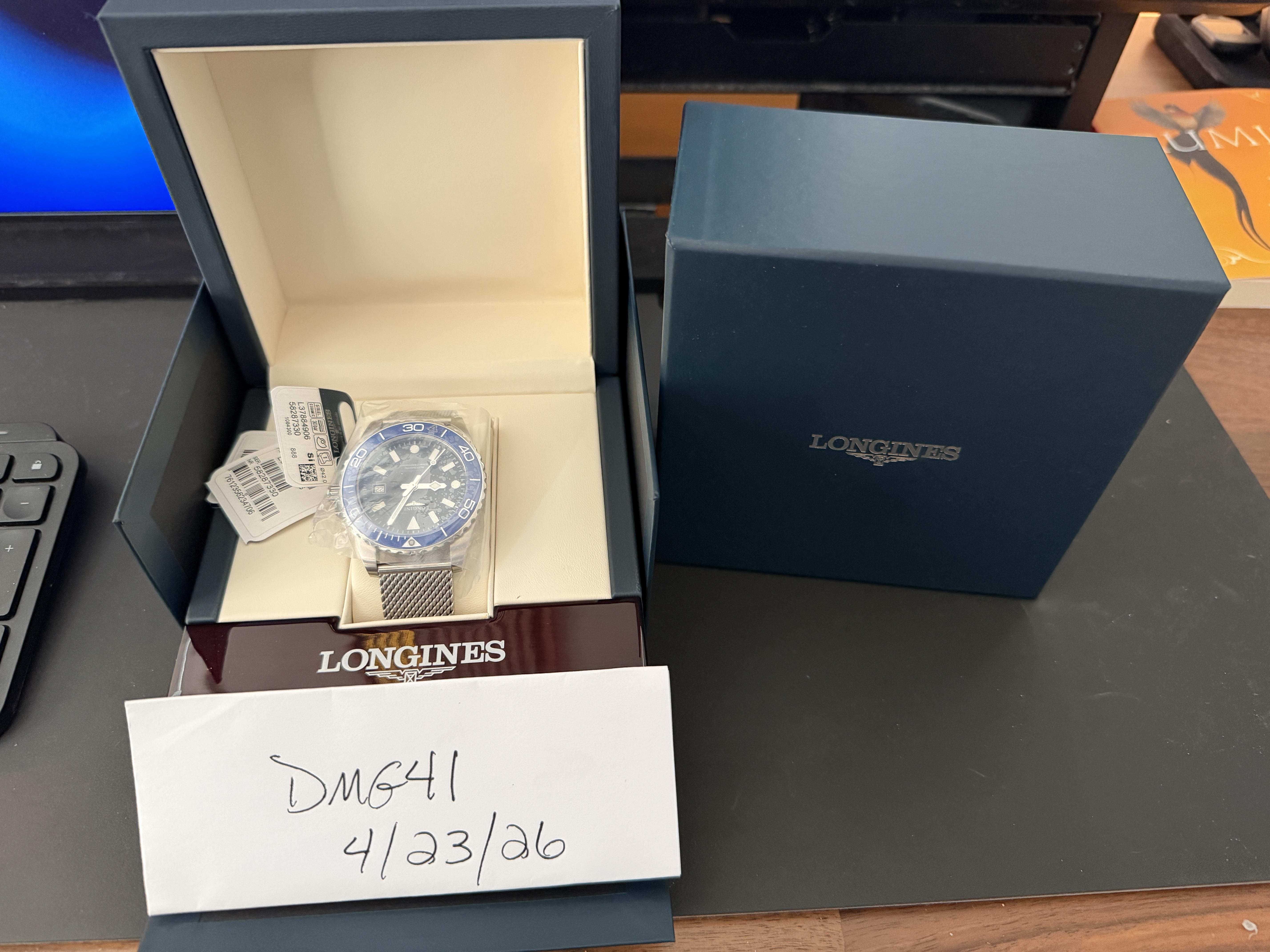 I’m selling a new 2026 Longines HydroConquest. This is the 42mm size. I am only selling because I really wanted the frosted dial version of this watch. This is the mesh band version and it has been sized but all links will be included. It was sized by Longines for my 8” wrist. I tried it on but hesitated to wear it because I wanted the frosted dial. This comes with its box and all papers. Price $2050 shipped anywhere in the US. Payment: Zelle or PayPal Friends and Family. I h...