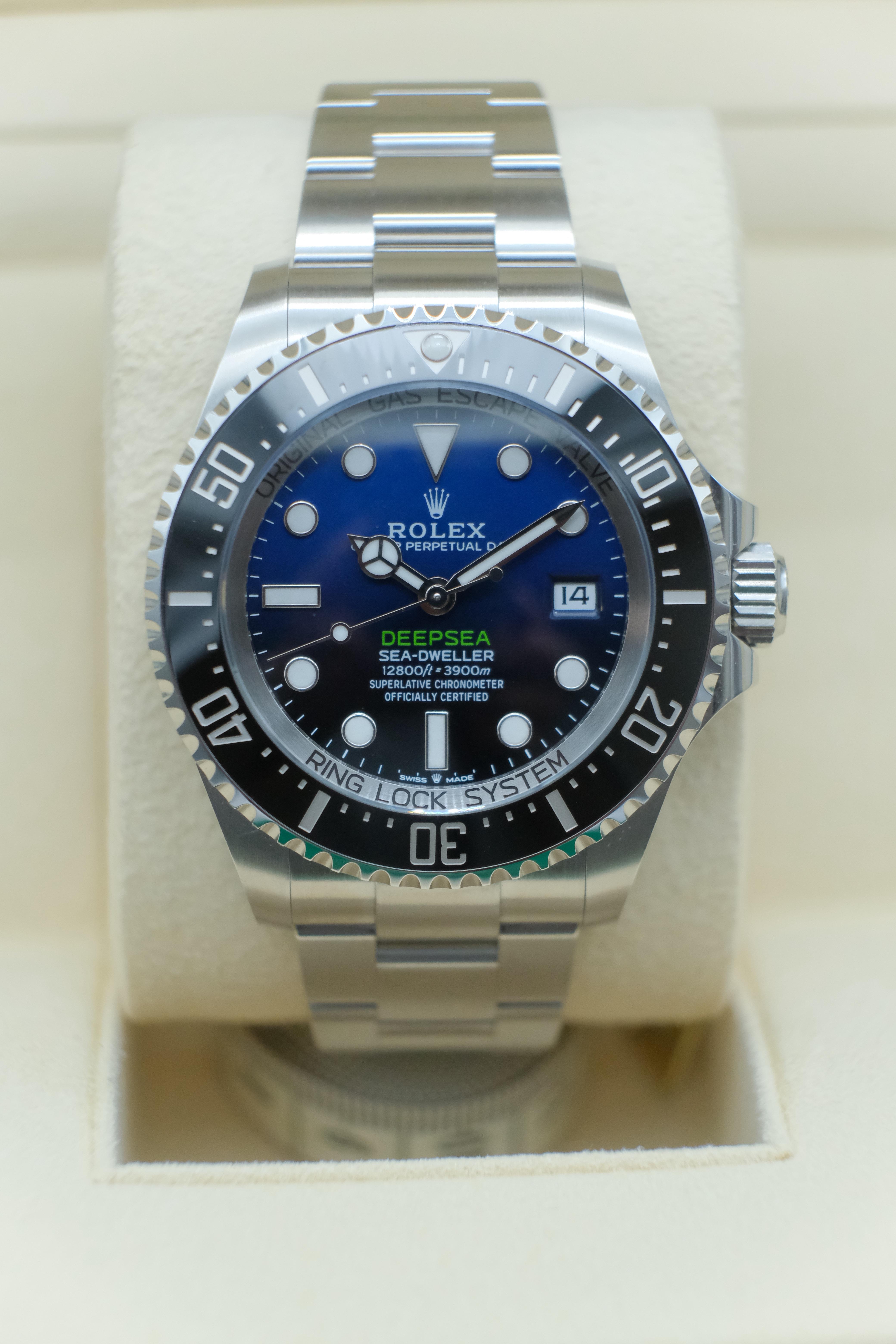 Hiya r/watchexchange, happy days! Up for sale is a 44mm Rolex Deep Sea Sea-Dweller with a gradient blue dial aka ‘James Cameron’ ref 136660. This reference features a larger date window than its predecessor, ref 126660. Also, being a 2023 watch, this particular time piece was one of the last releases that still had the SEA-DWELLER text on the dial. The watch is brand new and comes with everything pictured, inner and outer Rolex boxes, manual, green chronometer hang tag, serialized white hang t...