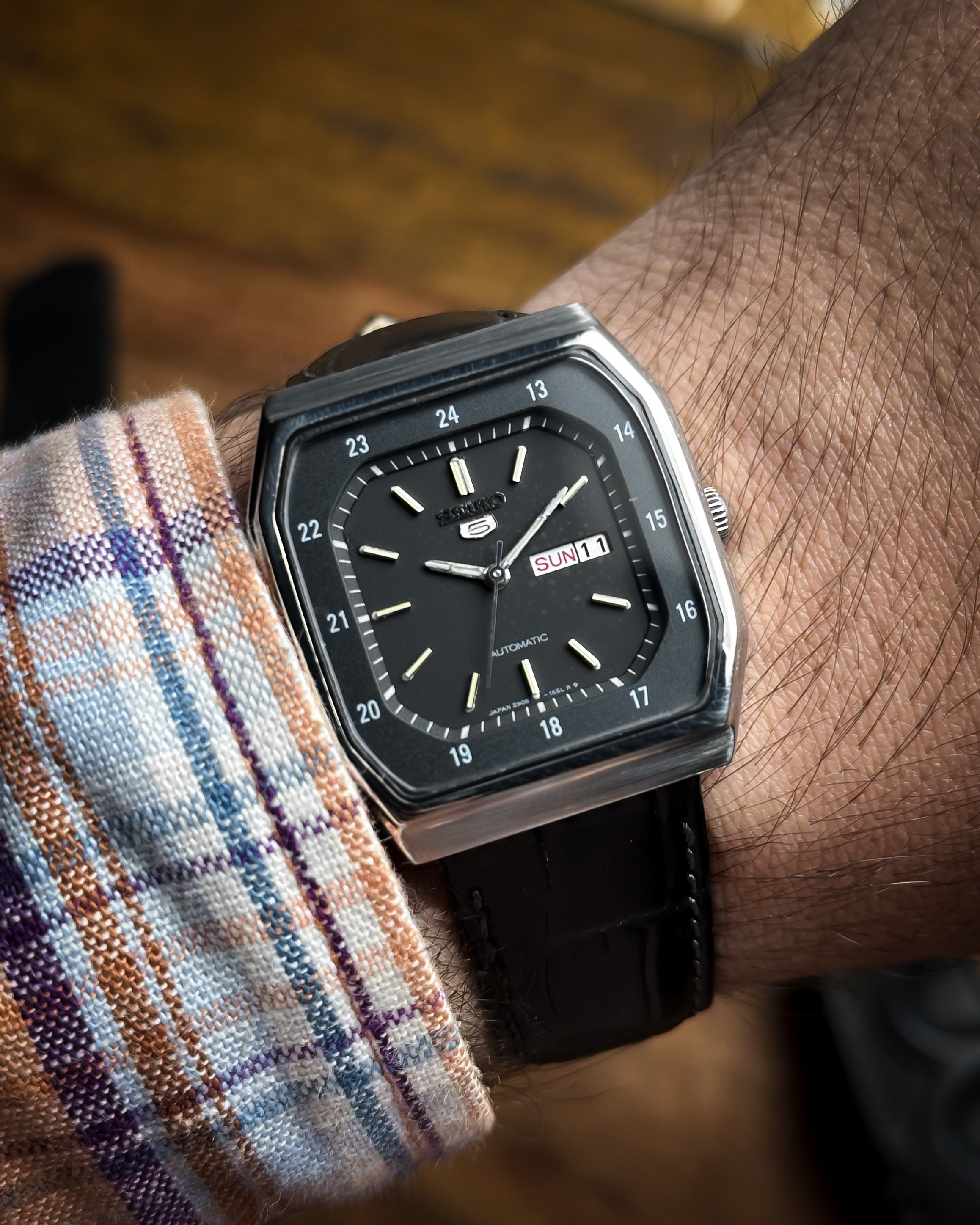 [Timestamp](https://drive.google.com/file/d/1_tpOU7KIg9Ir1DIWAF2c1JSdQB9WEb-D/view?usp=sharing) Hey Watchexchange! Next in our drop is a rare, high-depthย **Seiko 5 from September 1983 (Ref. 2906-545A)**. If you appreciate architectural watch design, this "Railway" model offers one of the most complex dial layouts from Seikoโs 80s catalog. Theย **Matte Black Dial**ย is a masterclass in layers. It is surrounded by a slanted, octagonal minute-track boundary that transitions into a fixed inner beze...
