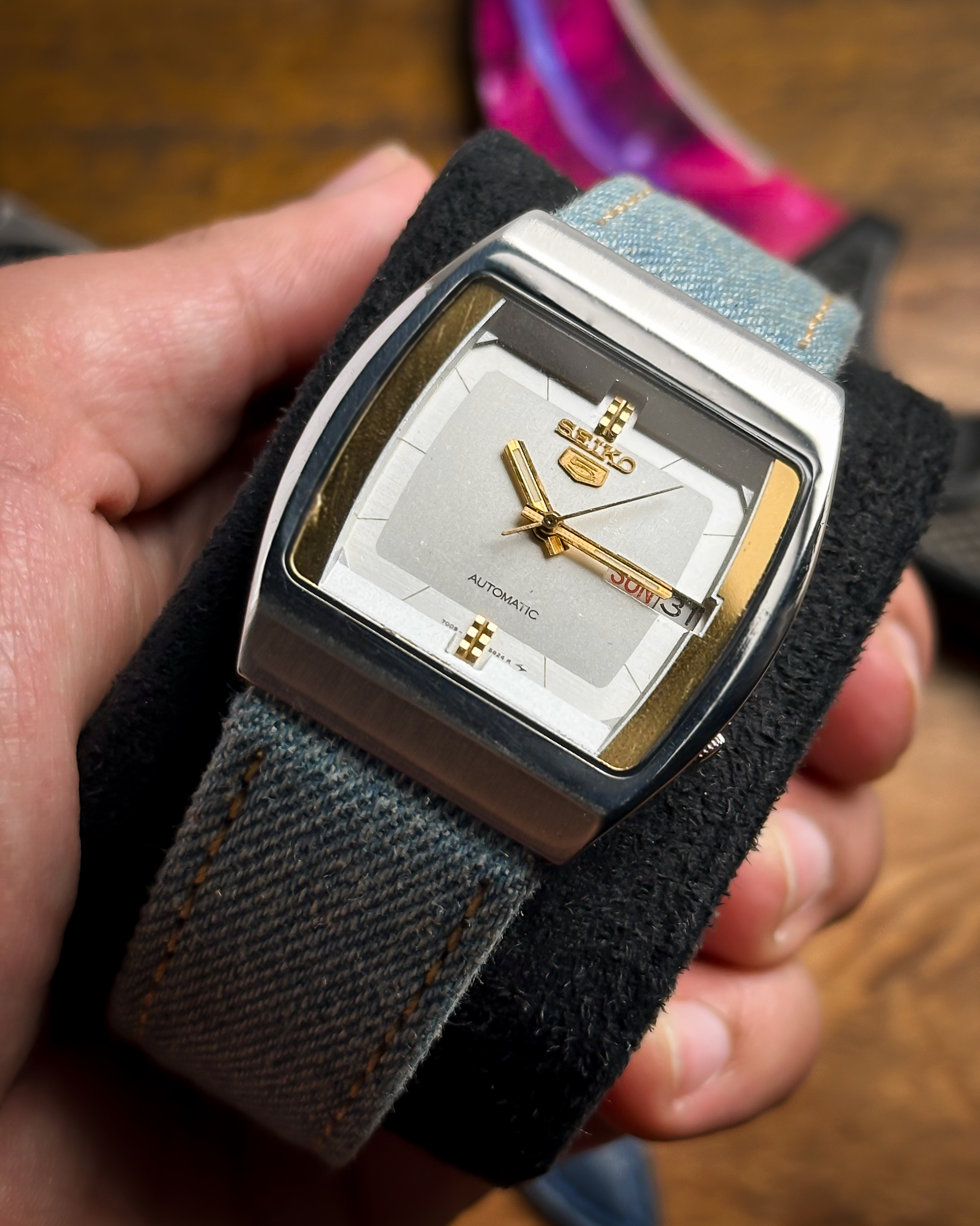 [Timestamp](https://drive.google.com/file/d/1_tpOU7KIg9Ir1DIWAF2c1JSdQB9WEb-D/view?usp=sharing) Hey Watchexchange! For sale is a truly unique "character" piece fromย **July 1985**. This Seiko 5 Ref. 7009-5770 is a masterclass in 80s geometry, offering a rugged yet refined "denim and gold" aesthetic. The star of the show is theย **White Linen Texture dial**. It features a unique "depth effect" created by a boundary of slim, printed stick indices that lead your eye toward the center. Flanking the...