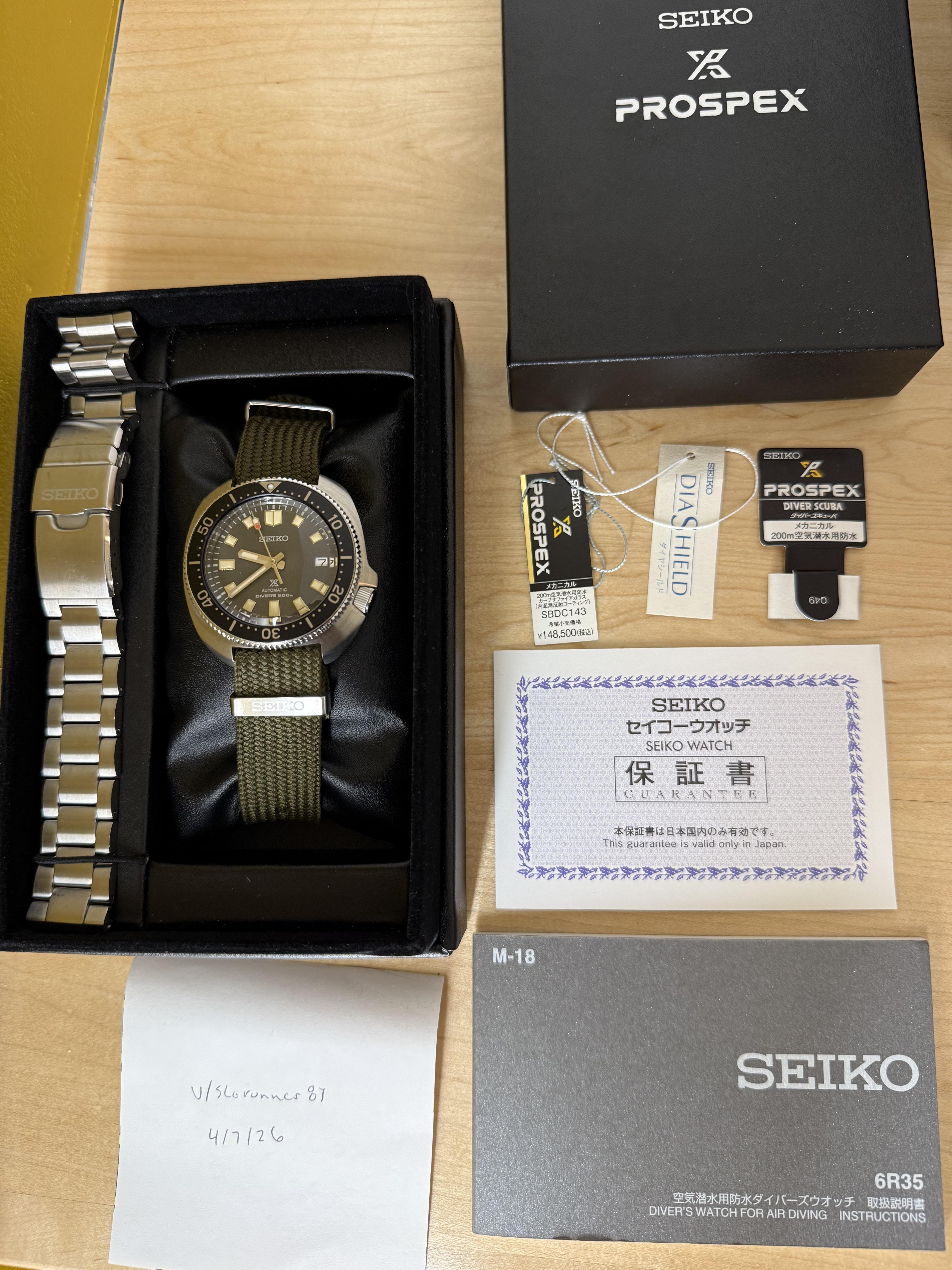 I’ve decided since I’m close to my 40th, it’s time to go big. I need to offload quite a few before then. This is a recent pickup from watchex to compliment my other divers. It was running fast but spent some time demagnetizing and now it falls within +25 to -15. No service history. Full Kit minus one original gray Seiko NATO Strap. PayPal, Venmo, Zelle $750 Shipped and Insured This is the JDM SBDC143 version of the Seiko Prospex SPB237 (also known as the "Captain Willard" re-interpretation) i...
