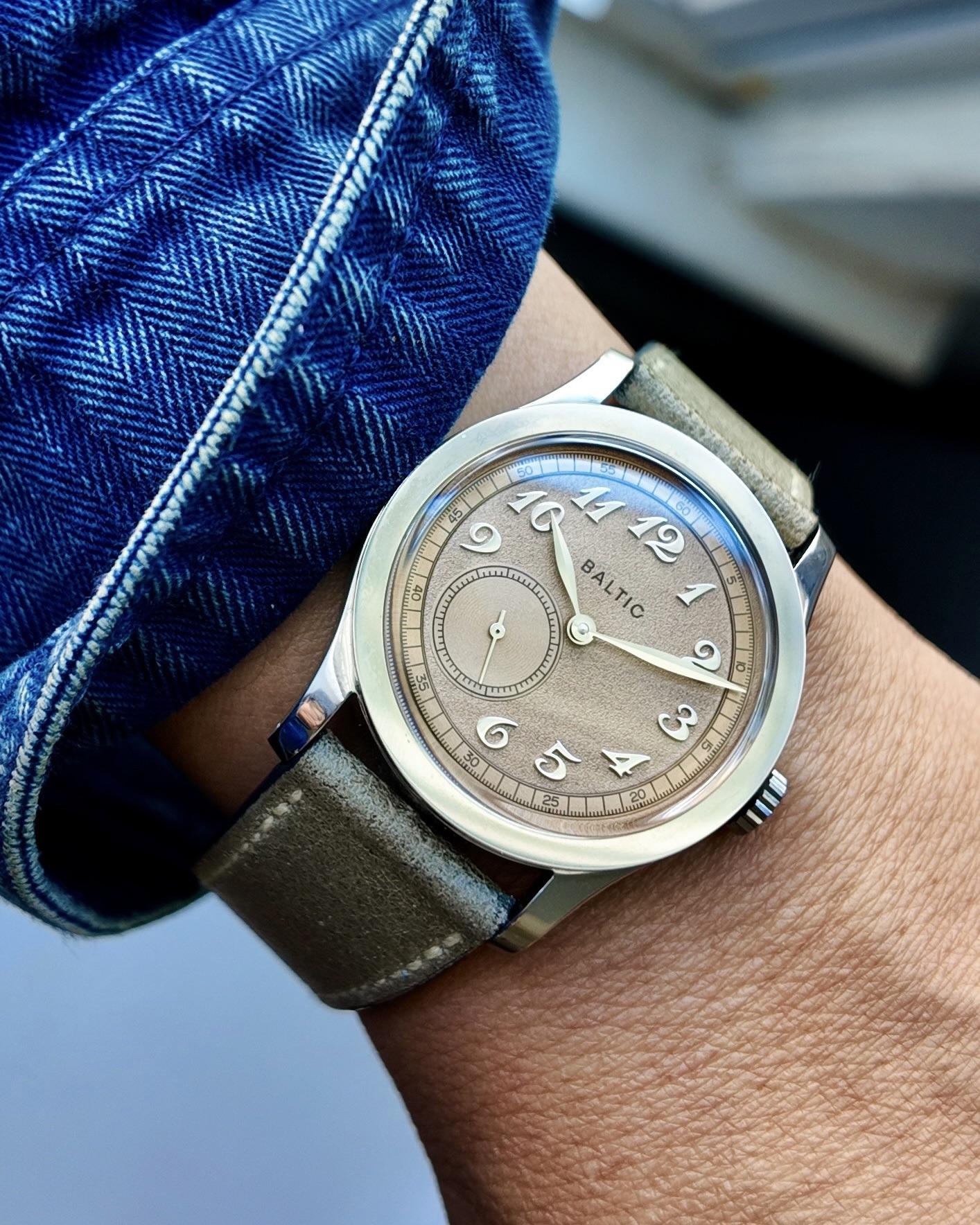 Baltic MR01 Salmon Baltic is a French watch company that considers the enthusiast community yet also points to the vintage minded collector with vintage inspired designs and proportions. The MR line offers a micro rotor which is synonymous with the Universal Geneve Polerouter and paired with a frosted salmon dial. Overall used but good condition. _________________________________________________ Timestamps Videos and timegrapher: https://drive.google.com/drive/folders/1yk1i2qg9gXWGV...
