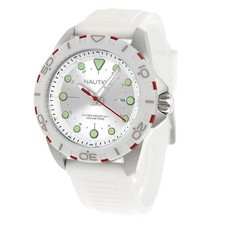 Nautica NAPNRS406 Men's Quartz Watch Silver Dial White Rubber Strap
