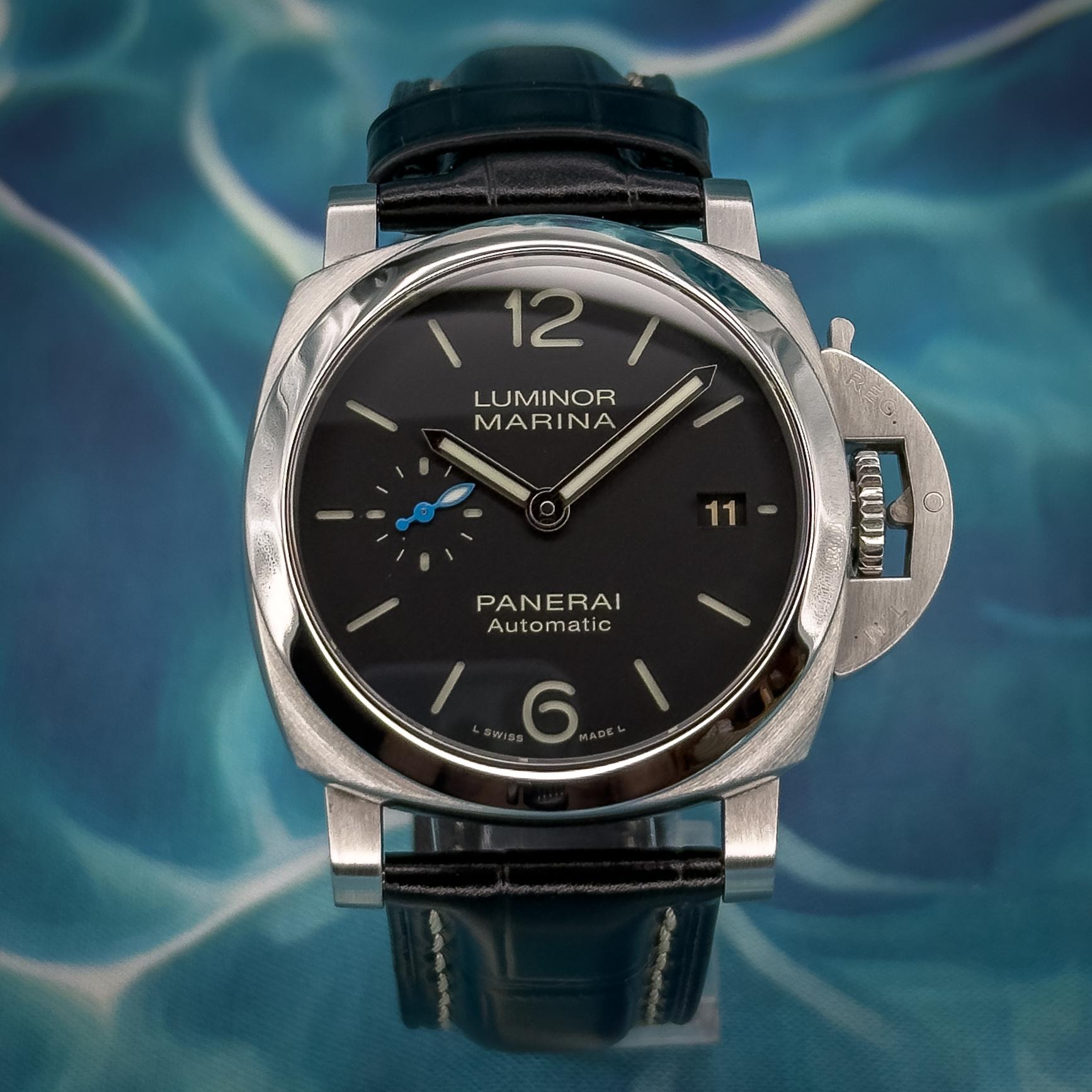 DESCRIPTION: Named after the word “forty” in Italian, this 40mm version of the iconic Luminor Marina packs the perfect touch of elegance. For those Panerai lovers who are either looking for a smaller PAM or just broadening their collection, look no further. The quintessential Panerai Black dial needs no introduction. Bolstering all of the same features as the 44mm other than its size, The Quaranta will climb the ranks of your watch collection. CONDITION: The watch is in great pre-owned conditi...