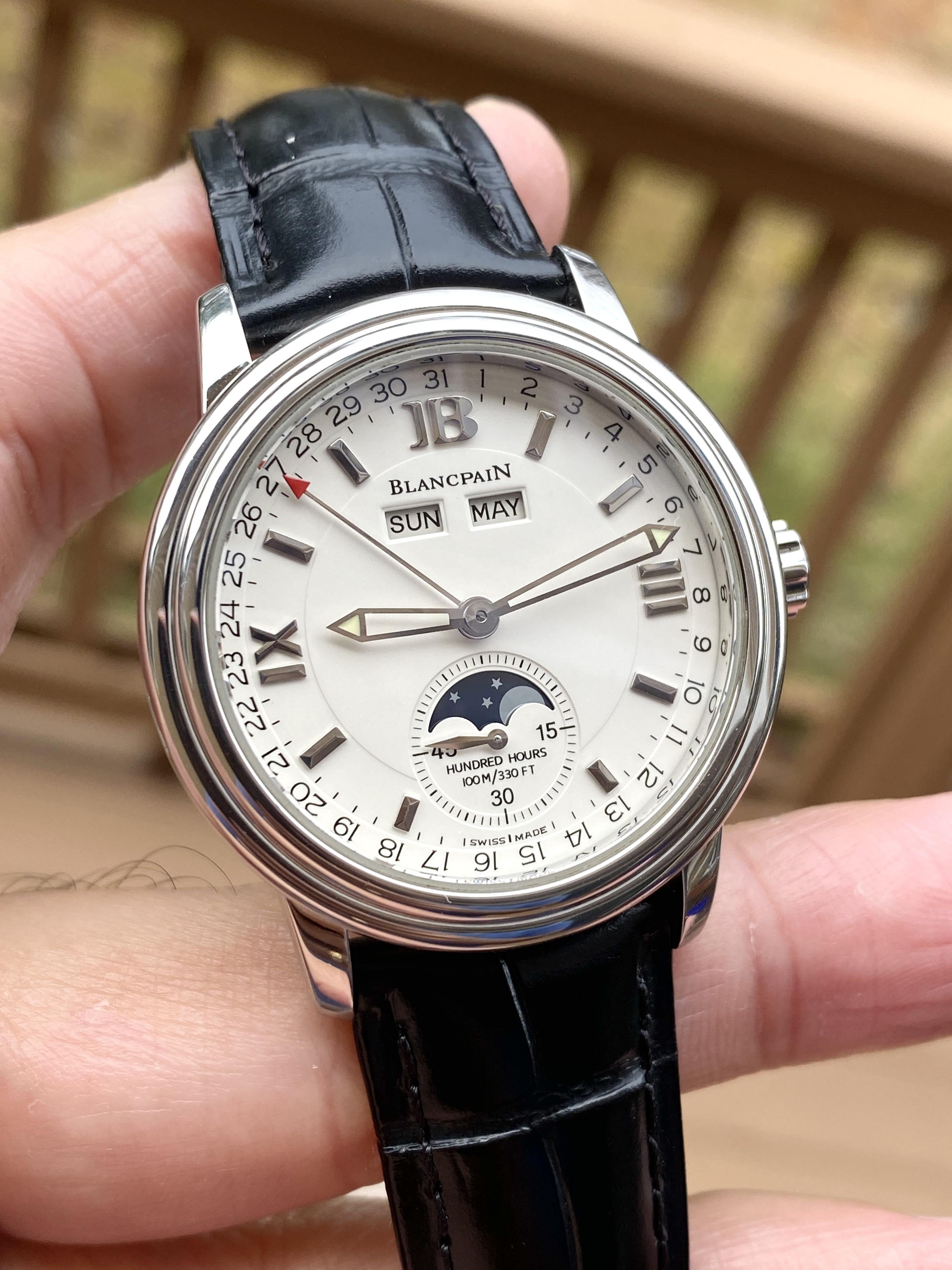 Hello All - I am putting for sale - Blancpain Lemans. 38mm. Triple Date. Moonphase. Clean. OEM strap, deployant clasp. 📷 More Pics: [https://www.dropbox.com/scl/fo/4noxhqjs9ljyly2960o7u/AJmbs0wC4Hs9ILyHYFKwOY4?rlkey=dih7zozp7gngib8cjrg0oepbg&st=ma9dqxhq&dl=0](https://www.dropbox.com/scl/fo/4noxhqjs9ljyly2960o7u/AJmbs0wC4Hs9ILyHYFKwOY4?rlkey=dih7zozp7gngib8cjrg0oepbg&st=ma9dqxhq&dl=0) 📆 Timestamp: [https://www.dropbox.com/scl/fi/om8dau32nj7ijpiery4t5/IMG\_9345.HEIC?rlkey=u7lrld6o4r8h5an7p...