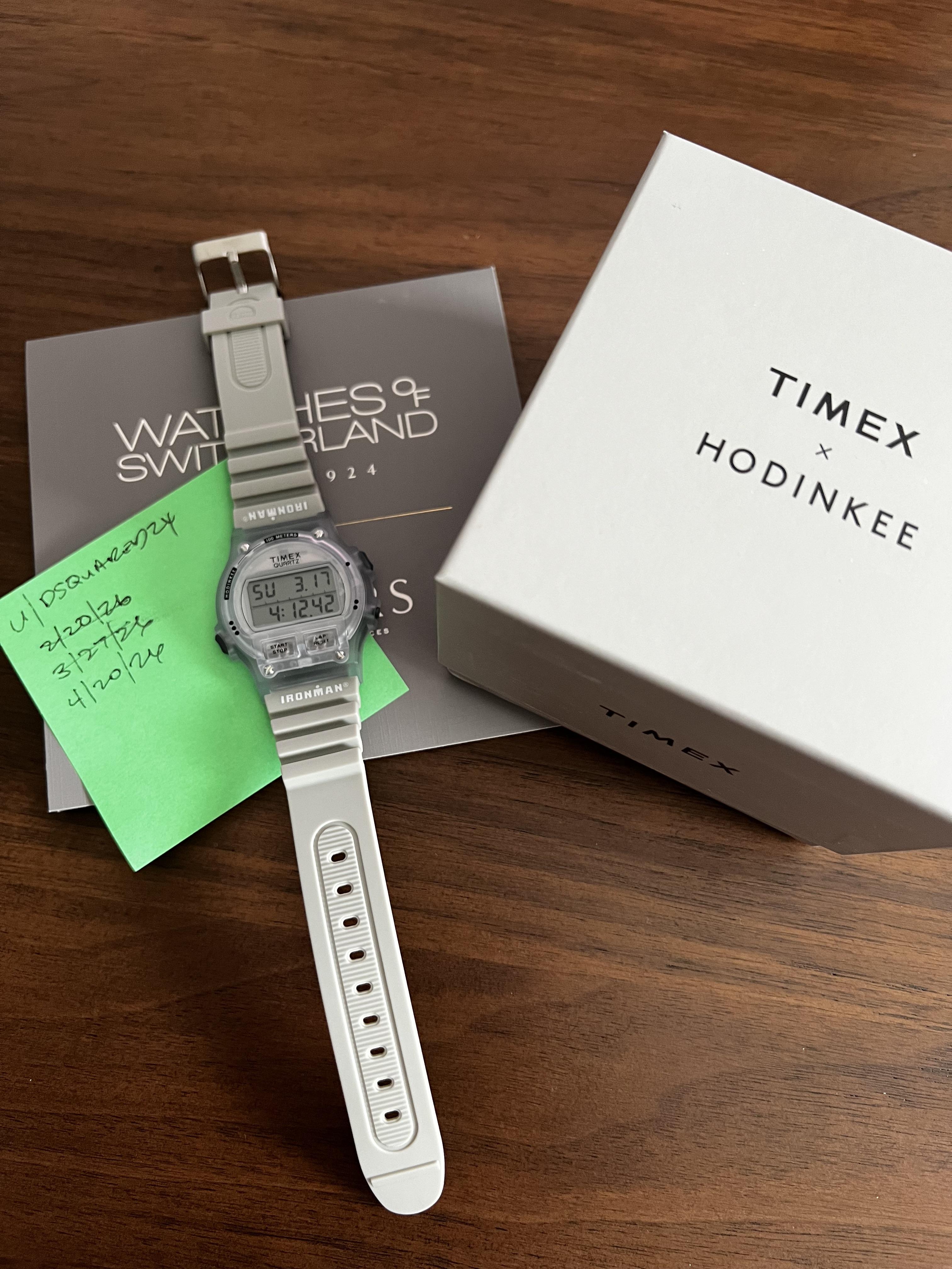 Up for sale is a brand new and never worn TIMEX® IRONMAN® 8-Lap Limited Edition For Hodinkee. Limited edition of just 2000 pieces and sold out. Reference TW5M73300JR. Product page: https://www.watchesofswitzerland.com/products/timex-timex-lab-tw5m73300jr-17160581?srsltid=AfmBOoqbH0I1ggL1dBH1xRCPFoQELtDBmeVwVaprh_NEtp7c34ItKkaj#product-specs Specs: 39mm case size. Quartz. 100m water resistance. Price: $300 shipped in the US only. No returns or trades. Payment via Zelle. Please let me know ...