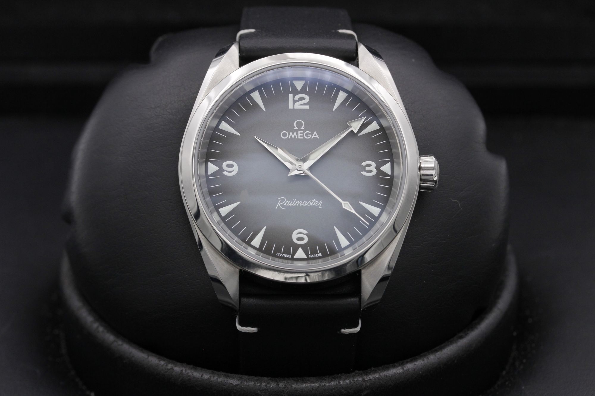 Hello All, Omega Railmaster 235.12.38.20.06.001 Brand: OmegaModel: RailmasterCase Size: 38mmCondition: Pre-OwnedGrade: Like NewBracelet Type: LeatherMaterial: Stainless SteelDial: GreyAge: ModernMovement: AutomaticPapers: YesBox:...