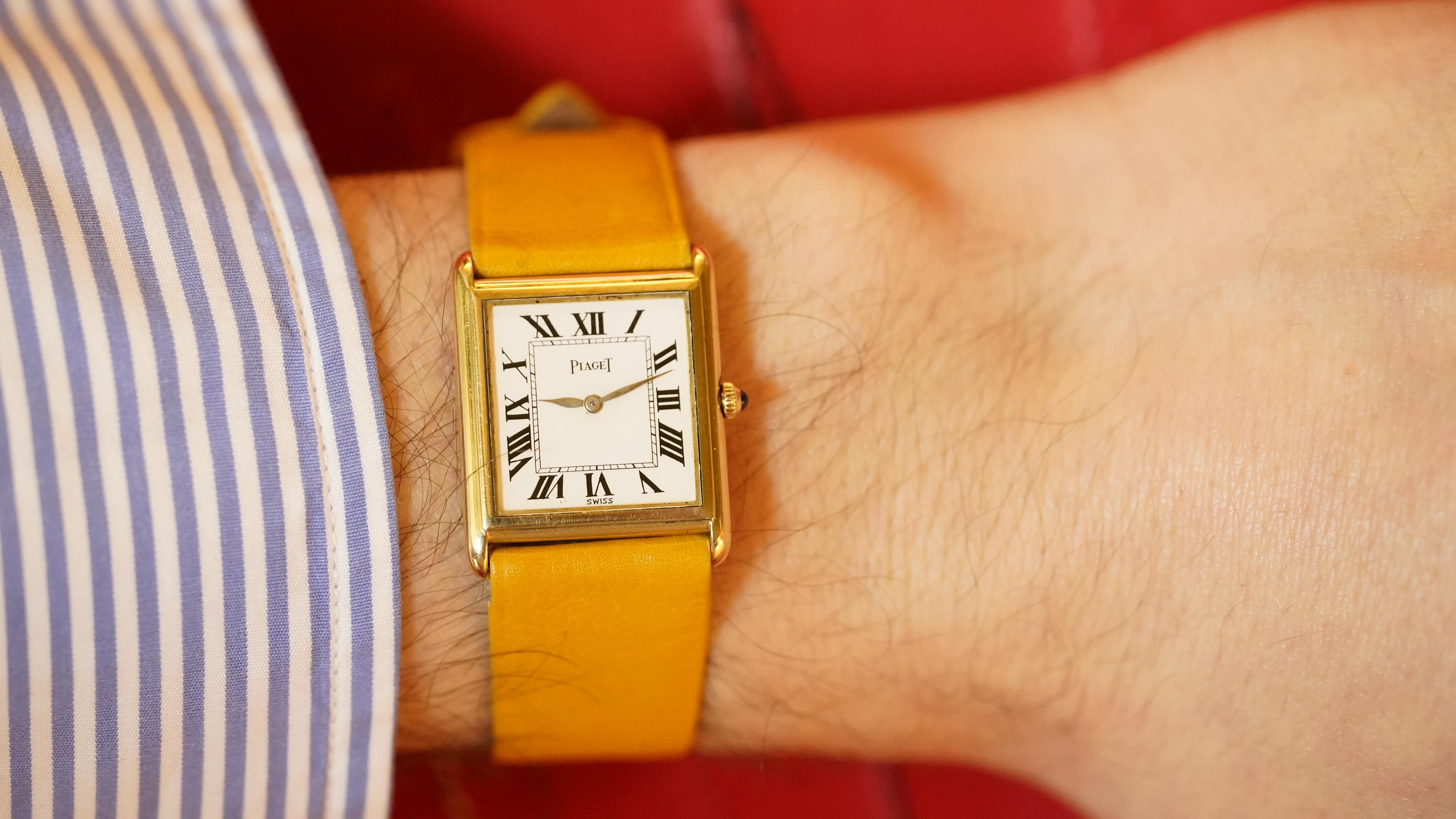 **For sale this Piaget Tank Ultra-thin ref. 9284 in yellow gold, a classic ultra-thin dress watch featuring a white Roman numeral dial and the elegant proportions that define vintage Piaget Tank models.** This Piaget Tank ref. 9284 features a 23 x 29 mm yellow gold case with a slim 4 mm profile, giving it the refined and understated look that made Piaget’s ultra-thin dress watches so desirable. Powered by the manual winding Piaget caliber 9P, it remains one of the brand’s most iconic ultra-thin...