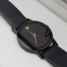 $750 MOVADO Museum 84.C6.855.2A Sapphire Black Dial Swiss Quartz Wrist Watch