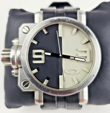 Oakley Gearbox Polished Chrome White & Black Dial Watch - New Battery