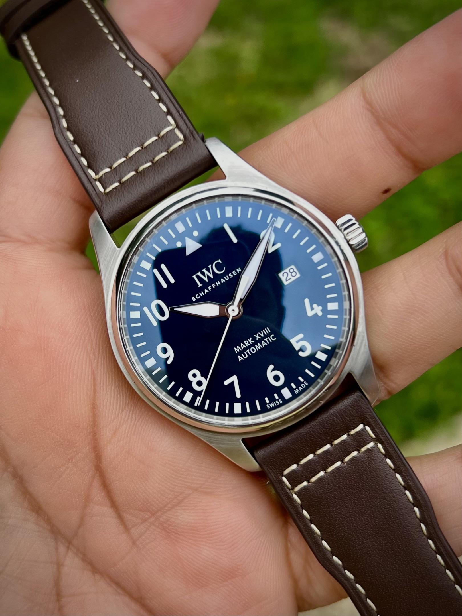 Hello, up for sale is my IWC Mark XVIII “Le Petit Prince” (IW327010), a clean and versatile pilot’s watch from IWC’s classic aviation lineup. It features the signature deep blue sunburst dial. At 40mm, it wears very comfortably and is an easy everyday piece. It has the classic IWC pilot layout with excellent legibility, strong lume, and a simple, functional design that works in almost any setting. Specs: - 40mm stainless steel case - Approx. 51mm lug to lug - 11mm thickness - Blue sunburst “Le ...