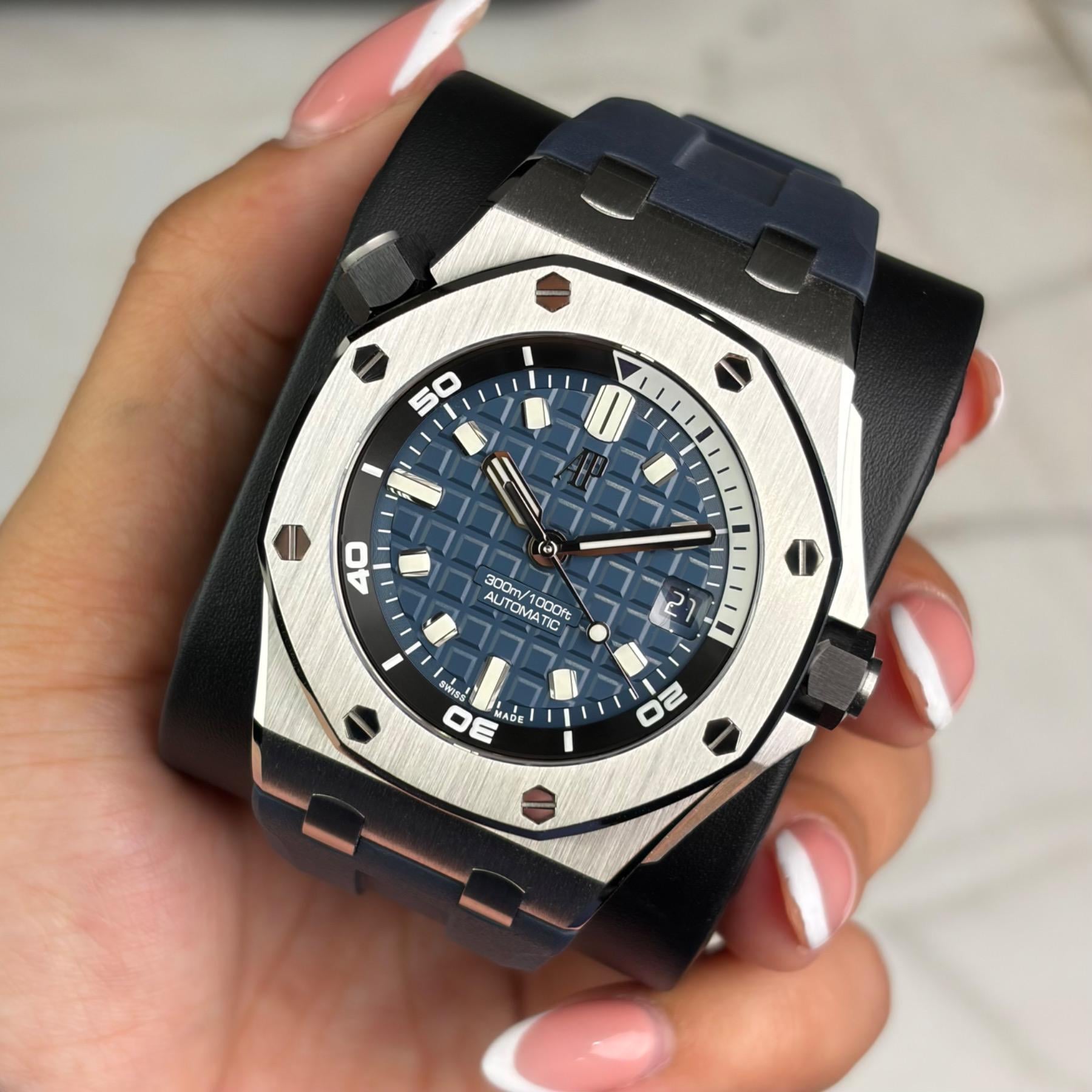 Timestamp: https://imgur.com/a/6FBGxH8 Album: https://imgur.com/a/WABUgEb ________________________________________________________________________________________ The Audemars Piguet Royal Oak Offshore Diver 15720ST is a bold, modern dive watch that combines the rugged Offshore aesthetic with refined finishing. Featuring a vibrant blue “Méga Tapisserie” dial with an inner rotating dive bezel, it delivers strong visual impact and excellent functionality. The 42mm stainless steel case is paired ...