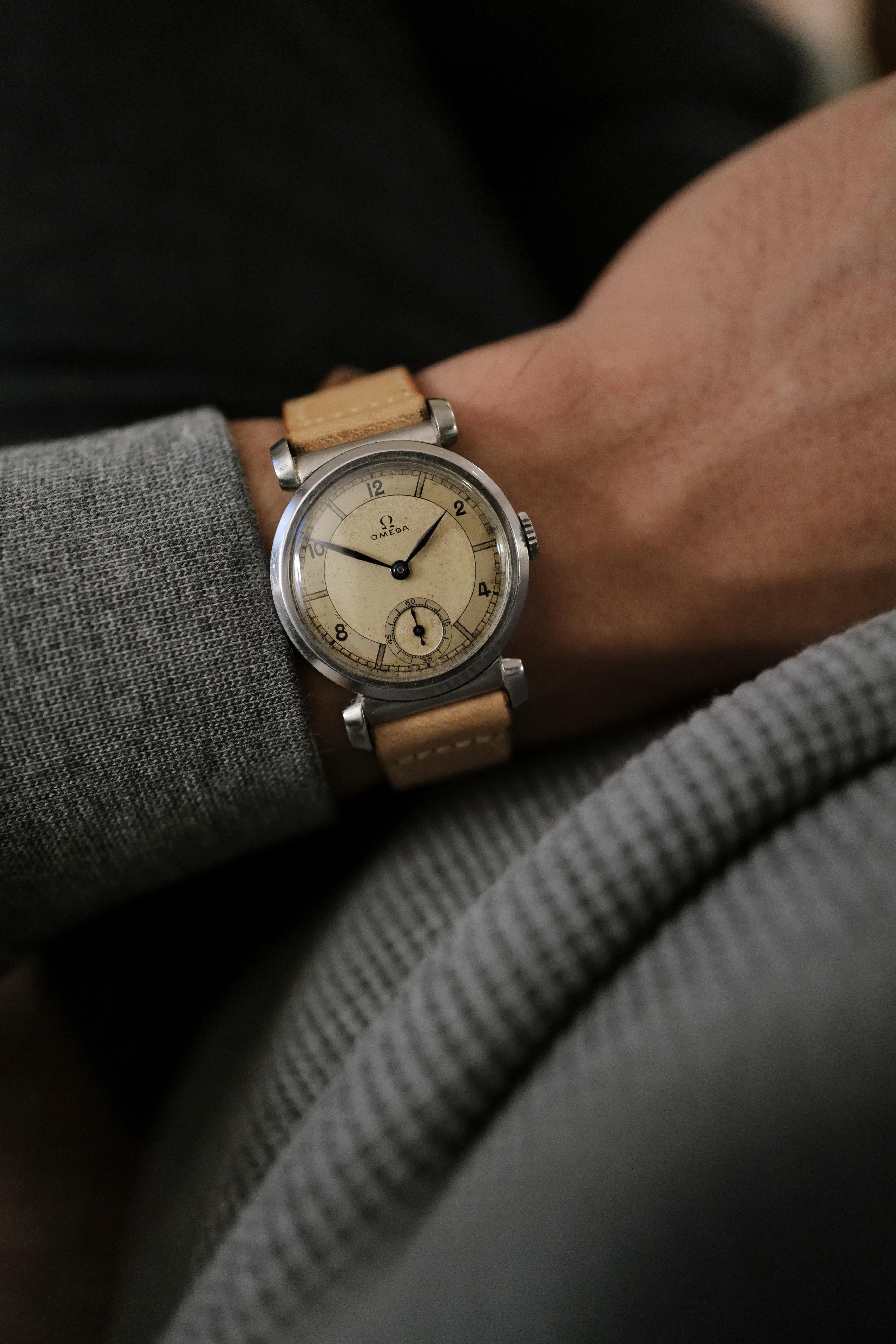 For sale: Vintage Omega Scarab Sector Dial, Ref CK 615 Product Description: Brand: Omega Model: Scarab Ref. CK 615 Year: 1939 Movement: : Cal. 26.5 SOB Case Material: Stainless steel Size: 31 mm excluding crown. Wears larger like 33mm, due to lugs design Lug width: 17mm fixed lugs Strap: Bespoke leather strap made in Japan Box & paper: none Things to love : - Original untouched sector dial - Original blued feuille handsets & original crown - Sharp full stainless steel case - M...