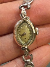 Vintage 14k White Gold Lady Hamilton Diamond Wrist Watch Working