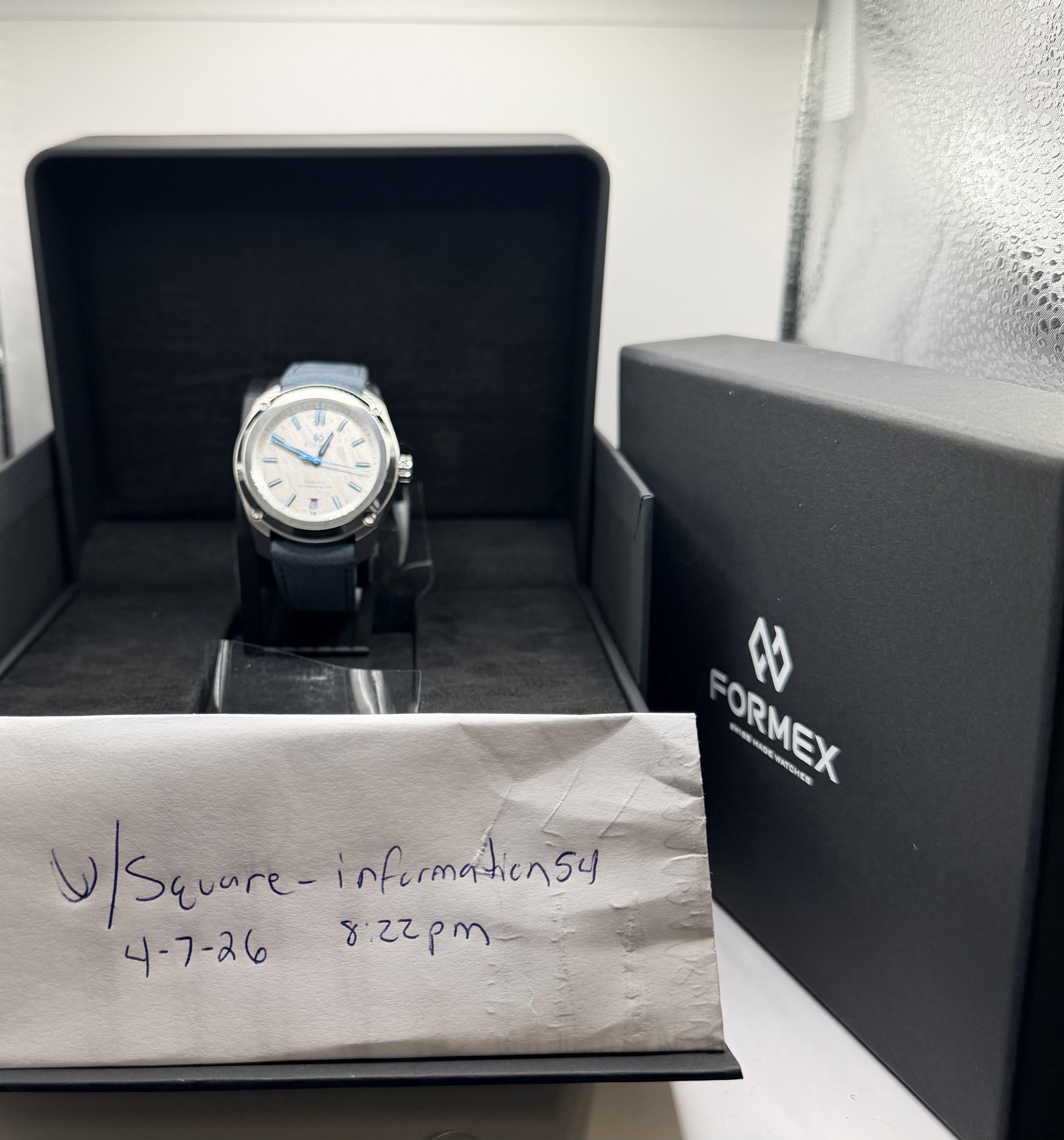 ![[WTS] Formex Essence Chronometer 39mm - Stunning Blue Dial - 100m WR - COSC - Case Suspension System - Quick Adjust Clasp - Very Clean - Full Kit - Only $1200 shipped CONUS](/_next/image?url=https%3A%2F%2Fsxdtrcenjzhqcznhokgy.supabase.co%2Fstorage%2Fv1%2Fobject%2Fpublic%2Freference-images%2Freddit%2F1sefm7q.jpg&w=1200&q=75)