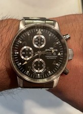 FORTIS Flieger Classic Chronograph Triple Calendar Black Dial SS Men's Watch