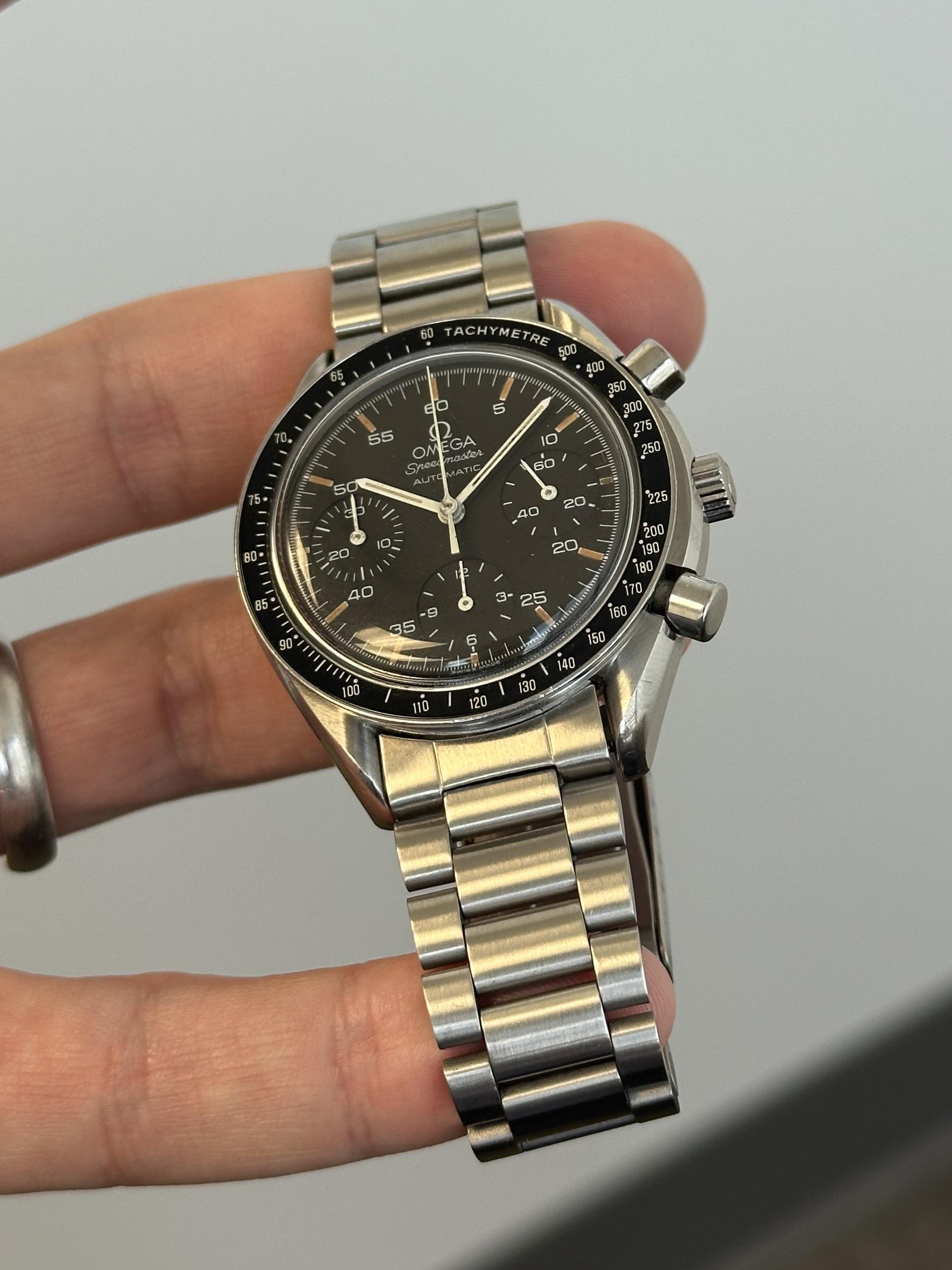 Up for sale is a Speedmaster Reduced reference 3510.50.00. This watch is from the 90s and features tritium lume that has aged to a beautiful "pumpkin pie" patina. One of the biggest problems with these watches is the servicing cost. Their movements are difficult to service. I had this one serviced and it is running like a champ. This watch comes watch only, and on an Uncle Seiko brand bracelet. **Price:** $1,835 but willing to consider comps **Timestamp:** in photos **Videos:** I can sen...