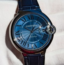Cartier Ballon Bleu BLUE DIAL 42mm w/ Date Alligator Strap Box & Papers WSBB0027