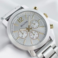Bulova 98A141 Chronograph Watch Silver Mens Very Good Condition Genuine