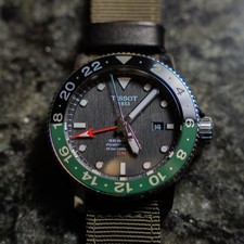 Tissot Seastar 1000 Powermatic 80 GMT with Khaki fabric strap