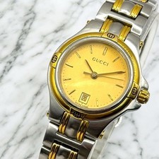 [Exc+5] GUCCI 9040L two-tone date ladies' quartz wristwatch. Vintage From Japan