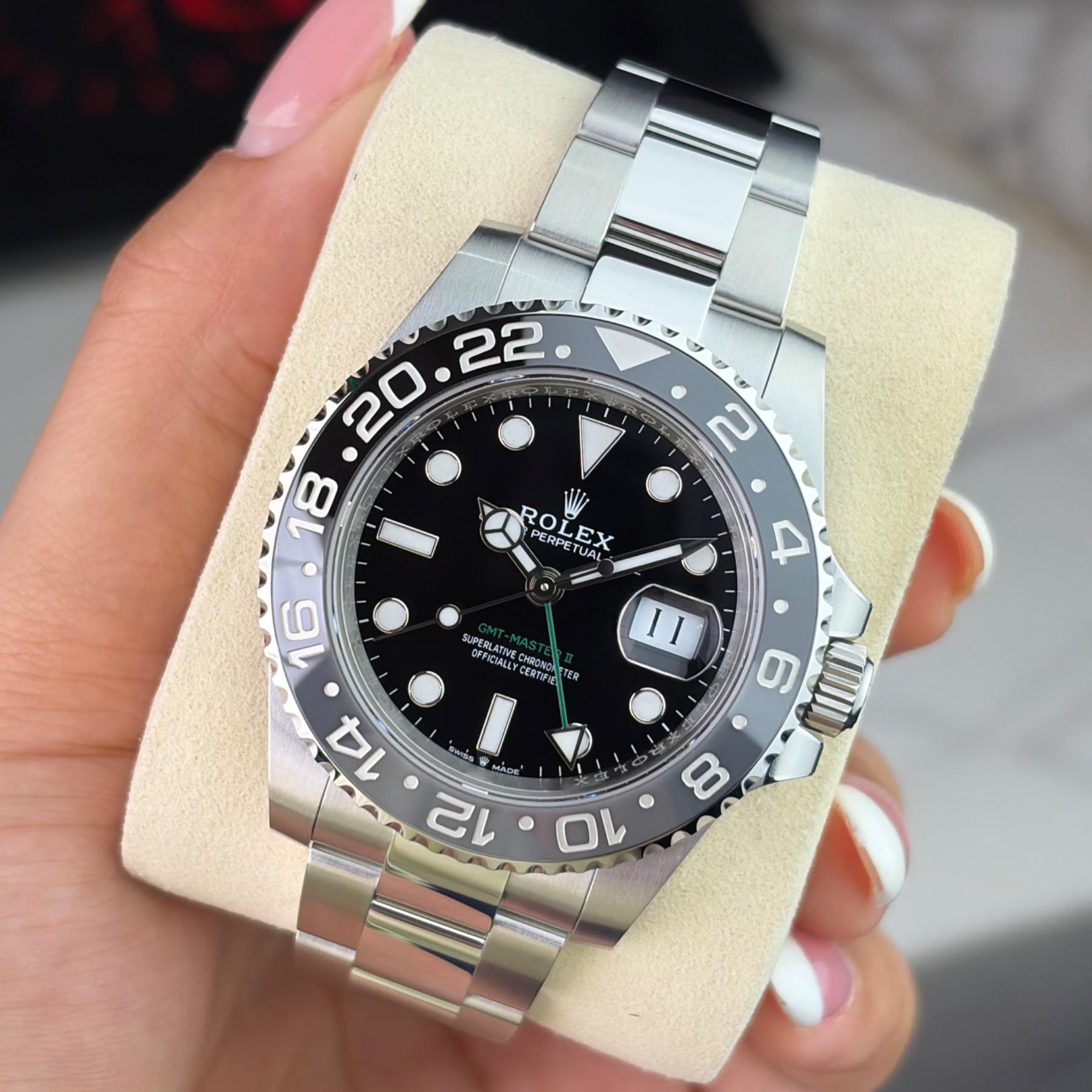 Timestamp: https://imgur.com/a/3ZgGdoM Album: https://imgur.com/a/gD8zoNZ ________________________________________________________________________________________ The Rolex GMT-Master II “Bruce Wayne” 126710GRNR (03/2026) is a striking and contemporary take on the iconic dual-time timepiece. Featuring a sleek black dial paired with a distinctive black and gray Cerachrom bezel, this model offers a versatile and modern aesthetic, complemented by the sporty Oyster bracelet for a more robust feel ...