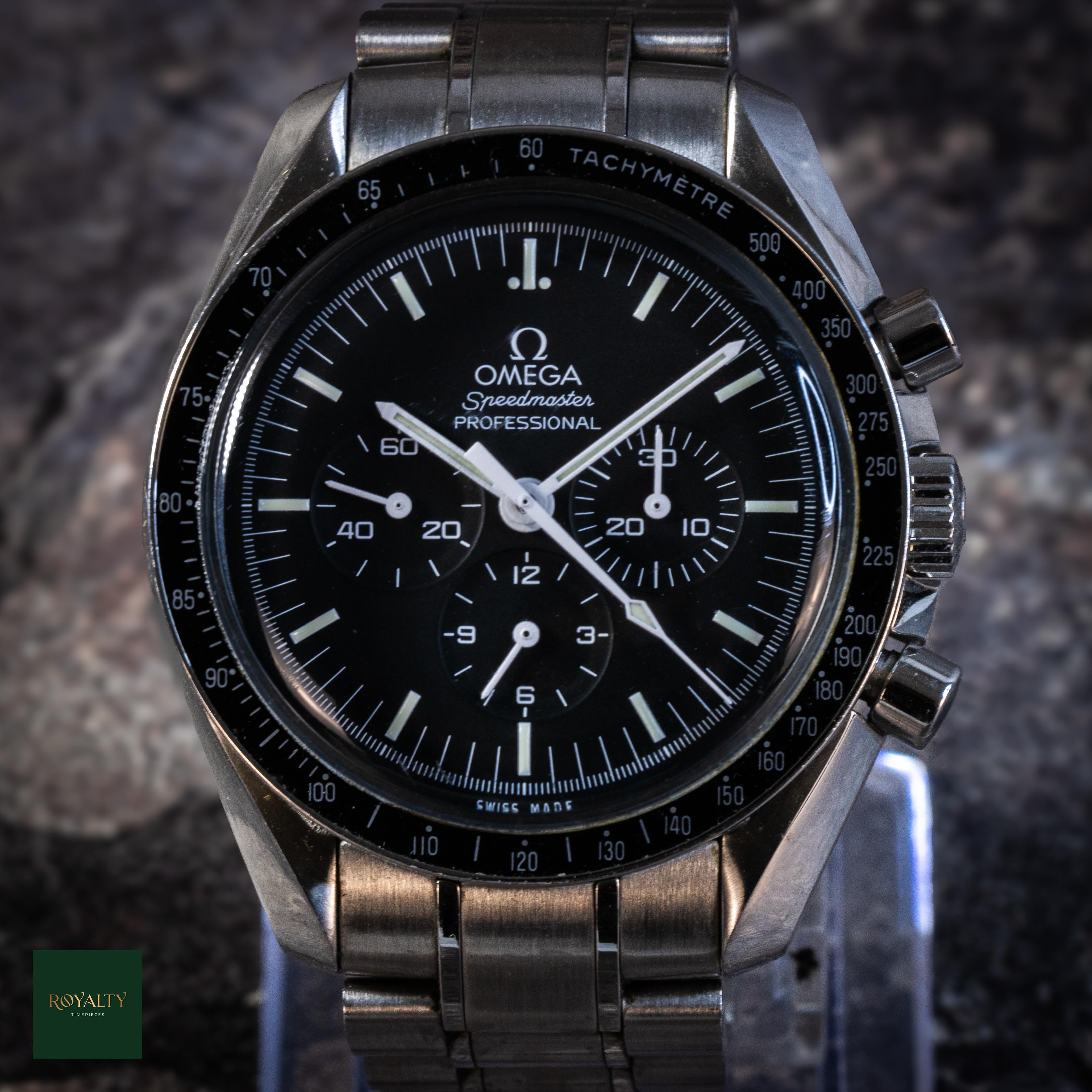 Omega Speedmaster Moonwatch Professional 311.30.42.30.01.005 Case: 42mm ------------------------------------------------- Condition Report: This timepiece has been enjoyed as a daily companion and is presented in honest, pre-owned condition. Case & Bracelet: There are light surface scratches and "desk diving" marks on the clasp and bracelet links. These are cosmetic and consistent with careful, regular wear. Hesalite Crystal: As is characteristic of this authentic space-spec material, the...