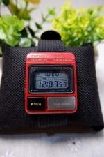 RARE Vintage SEIKO Pulsemeter S229-5001 Red Digital Watch 80s Retro Alien Era