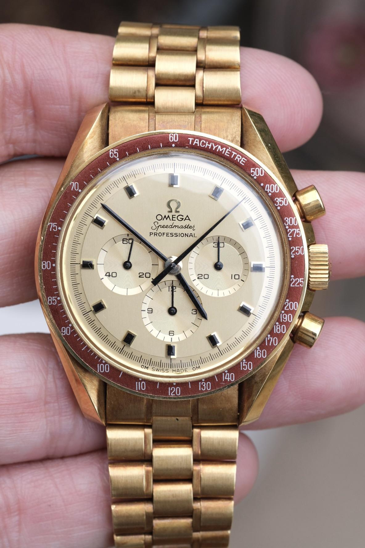 Artemis II approved!!! All hyperbole aside, this is, without a doubt, one of the coolest watches I’ve ever had my hands on. You’ve heard about it. You’ve seen the reissue. Here’s the OG. The first ever solid gold Omega Speedmaster, AKA the “Tribute to Astronauts” ref BA145.022-69. Just 1014 made starting in November of 1969. The first two were gifted to the President and Vice President (they had to politely refuse the gifts based on value!) Then 31 were gifted to prominent astronauts. And the ...