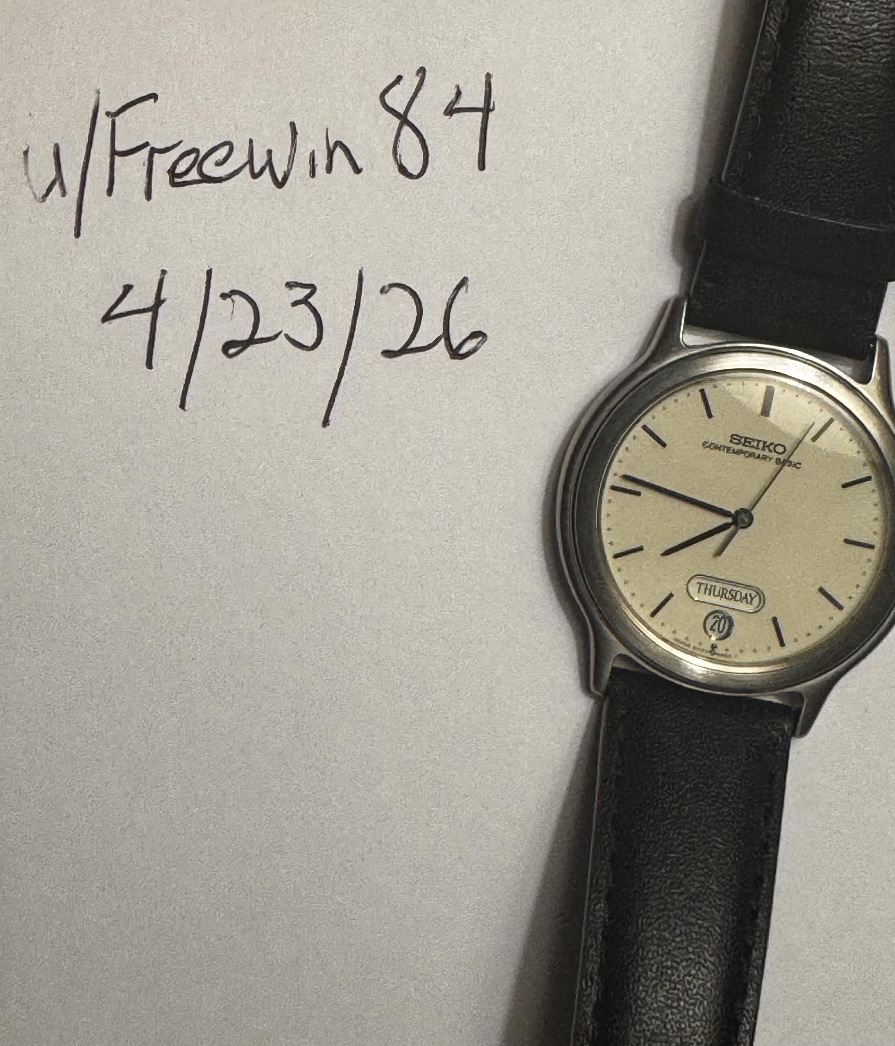 ![[WTS] 1991 Seiko "Contemporary Basic" 5H23-6B90 • Rare Vertical Day-Date at 6 • Cream Dial • Strap & Bracelet • $425](https://sxdtrcenjzhqcznhokgy.supabase.co/storage/v1/object/public/reference-images/reddit/1st9m93.jpg)