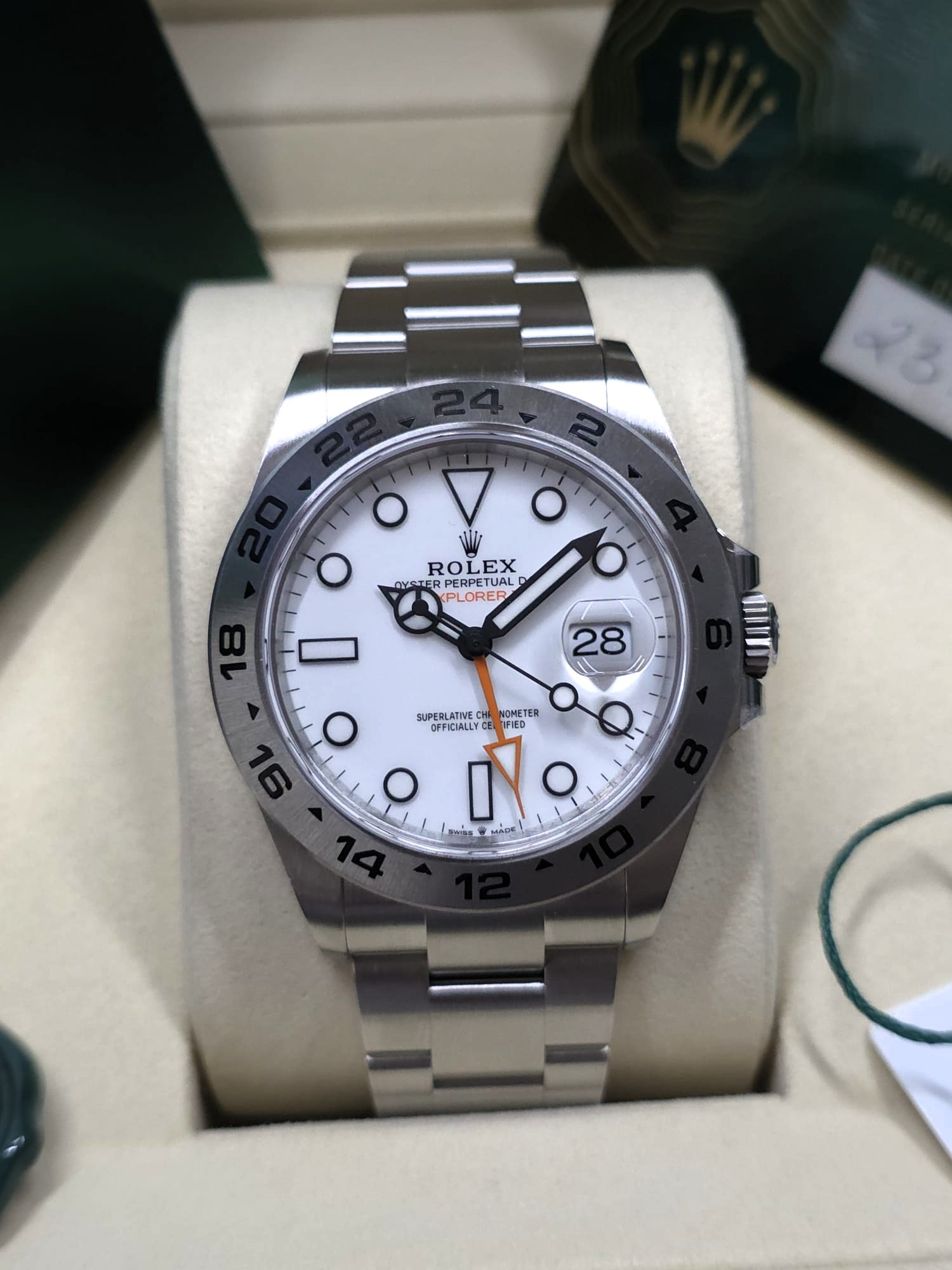 **Rolex Explorer II “Polar”** **Ref: 226570** This watch is brand new and unworn, with no signs of wear. Featuring the crisp white “Polar” dial and 42mm stainless steel case, it is powered by the Rolex Caliber 3285 movement with GMT functionality. It comes complete with double box, hang tags, booklets, full links, and a warranty card dated 2/2026. A clean, full set example ready to be worn or added to any collection. Price - $12,975 shipped Pics & Timestamp - [https://...
