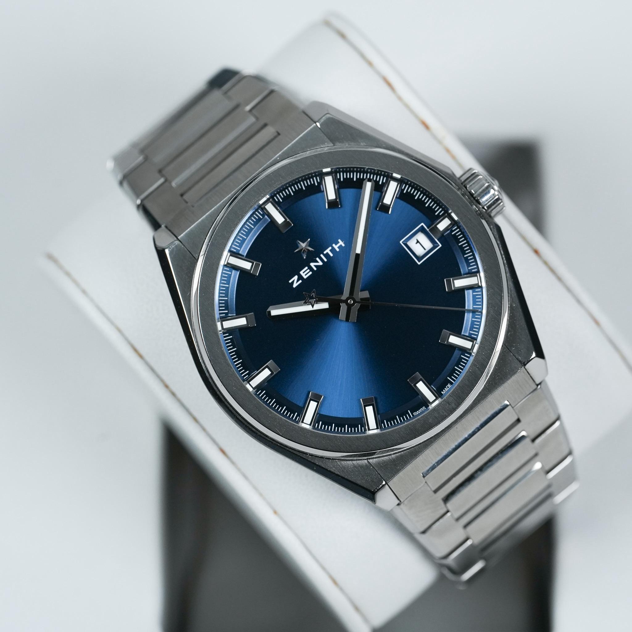 The Zenith Defy Classic 95.9000.670/51.M9000 is a modern, lightweight luxury sports watch featuring a 41mm brushed titanium case and integrated bracelet, paired with a striking blue sunray dial and date display. Powered by Zenith’s ultra-thin Elite 670 automatic movement, it offers a 50-hour power reserve and 100m water resistance, blending sharp, architectural design with everyday wearability. Super comfy on the wrist and goes with any look. Offered here for $4,500 with insured shipping inclu...