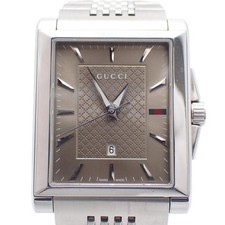 GUCCI YA138402 G-Timeless Rectangle Quartz Mens Watch Brown Dial Stainless Steel