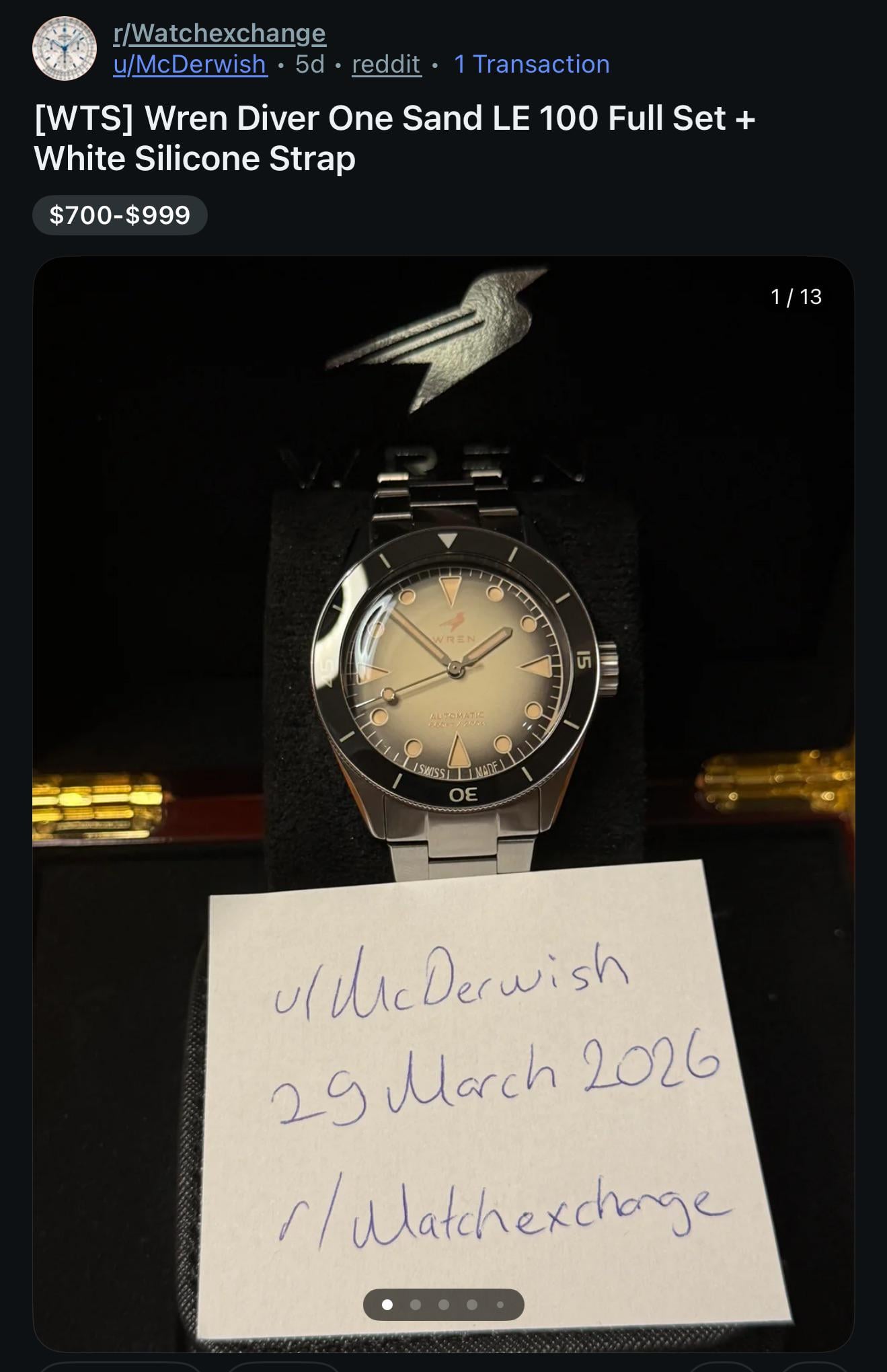 [WTS] Price update $650 Wren Diver One Sand 91/100