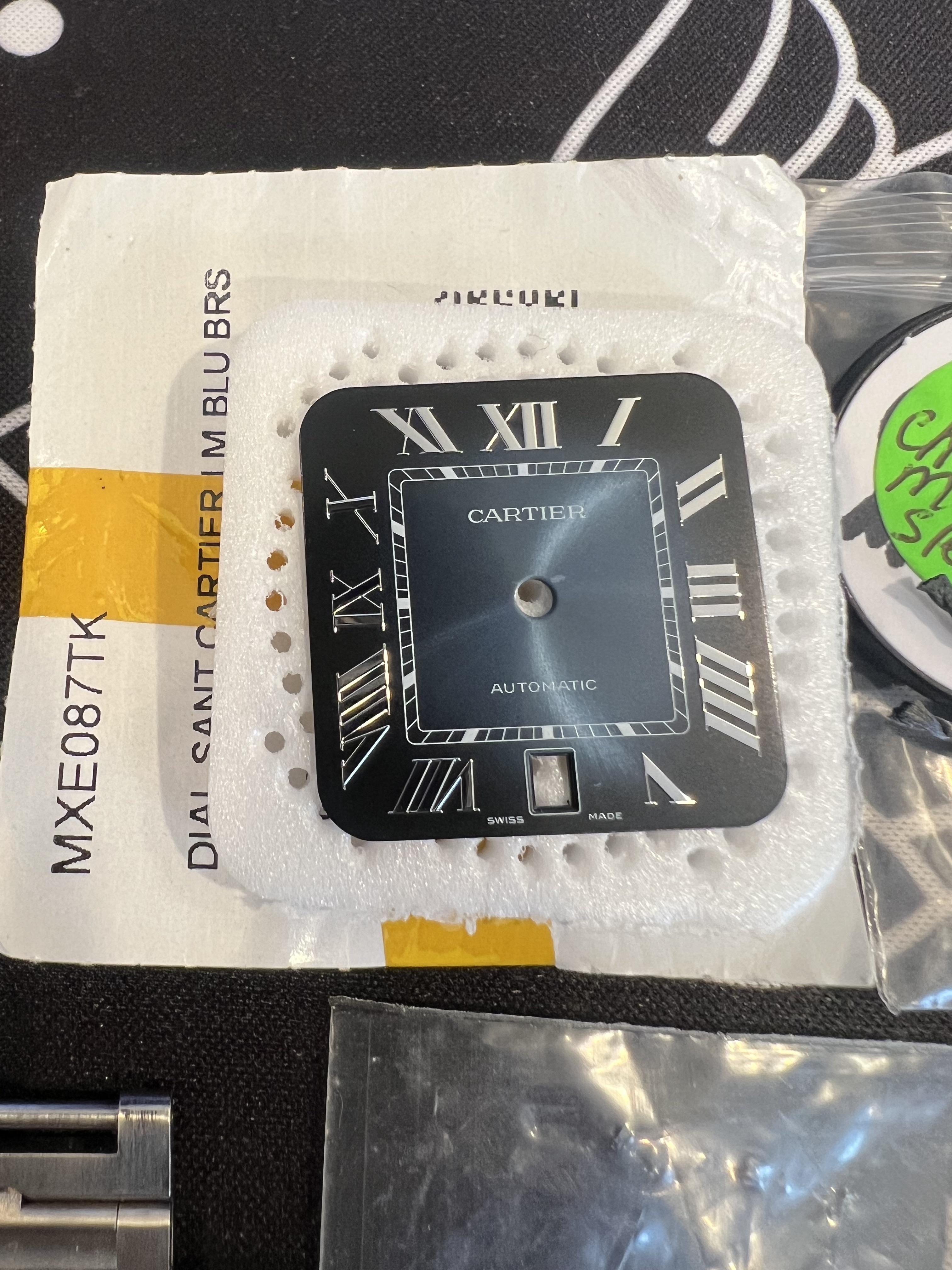 Timestamp linked above. Selling off a BNIB Cartier santos dial today! This dial has never been installed on a watch, however it does have a small flaw in its clear coat right around the center hole where the hour wheel, canon pinion, and seconds pinion protrude. I tried my best to capture this with my iPhone camera lol Asking $200 OBO shipped and tracked within the lower 48 states. Domestic shipping only. Thanks!