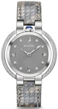NEW BULOVA RUBAIYAT DIAMOND GRAY DIAL LEATHER SAPPHIRE CRYSTAL WATCH 96R218
