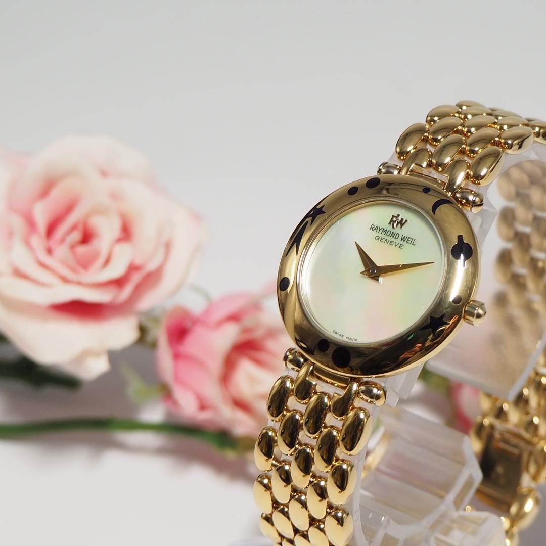 RAYMOND WEIL Ladies Watch F972 Shell Dial Quartz Stainless Gold Case Band