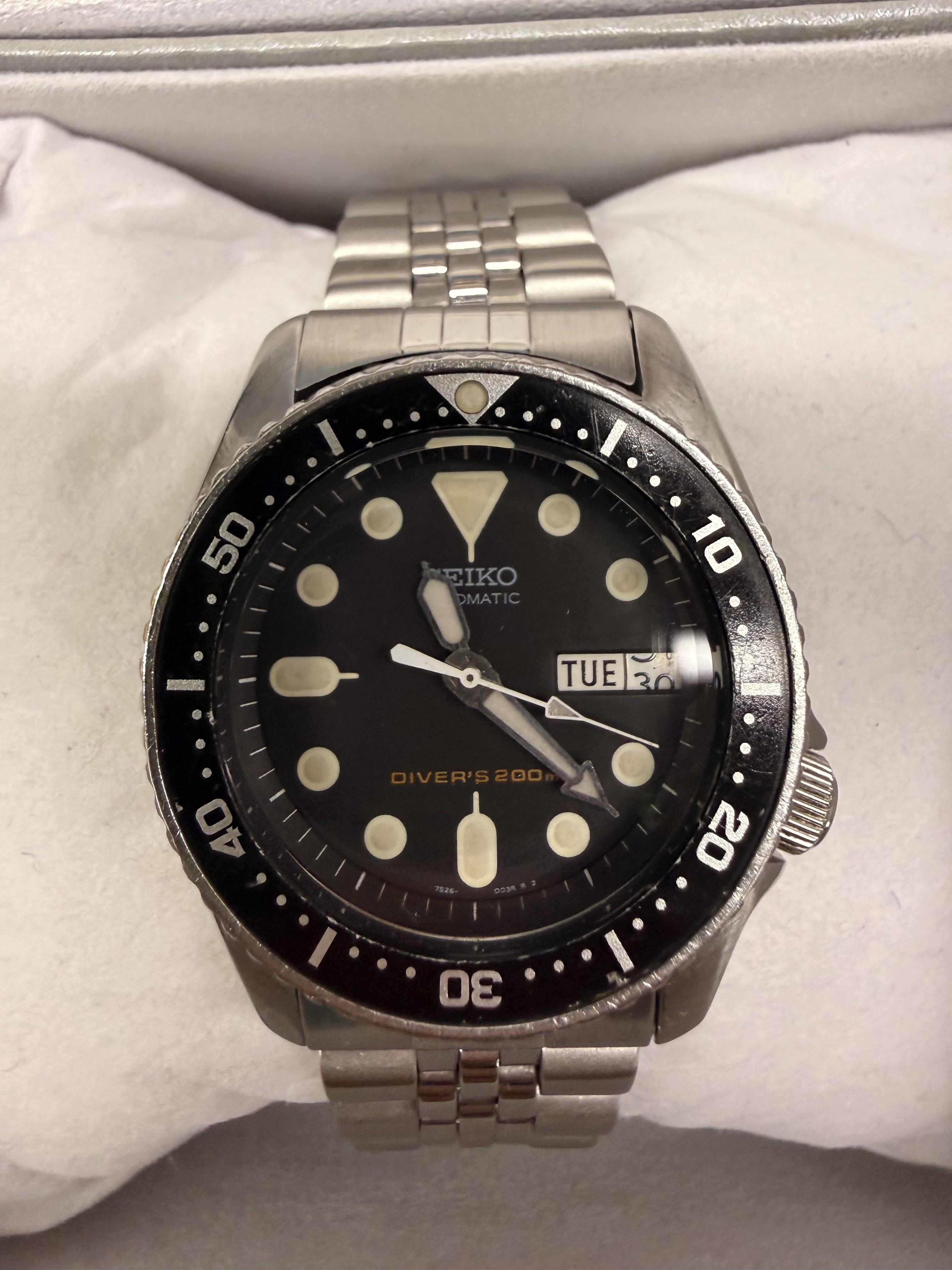 Hey there all! Selling my worn and loved SKX013. Bezel has fading and a fair amount of scratches. Crystal is in great condition and keeps time well, around +4 seconds. The jubilee bracelet is original and very comfortable, although a bit jangly. It measures for a 7 inch wrist comfortably, although the bracelet can be extended further. It measures 38mm by 13mm thick. It’s a wonderful field and diving watch, but I don’t wear it enough to justify keeping it. Asking $220 or best offer with shipping ...