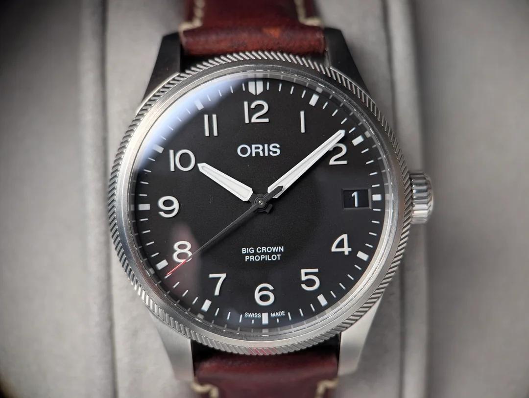 **Oris ProPilot Big Crown Date 01 751 7761 4164-07 6 20 07LC** * Original Oris leather strap w/ signed seatbelt clasp * Signed crown * Oris 751 (ie. Sellita 220-1 automatic movement w/ 38h reserve) * Matte black dial w/ raised (3d) Arabic numerals * All stainless steel 41mm case w/ * Double domed sapphire crystal w/ anti-reflective coating inside * See-through caseback * Original box & manual * **$950 shipped** Con USA USPS Priority, PPFF or Venmo