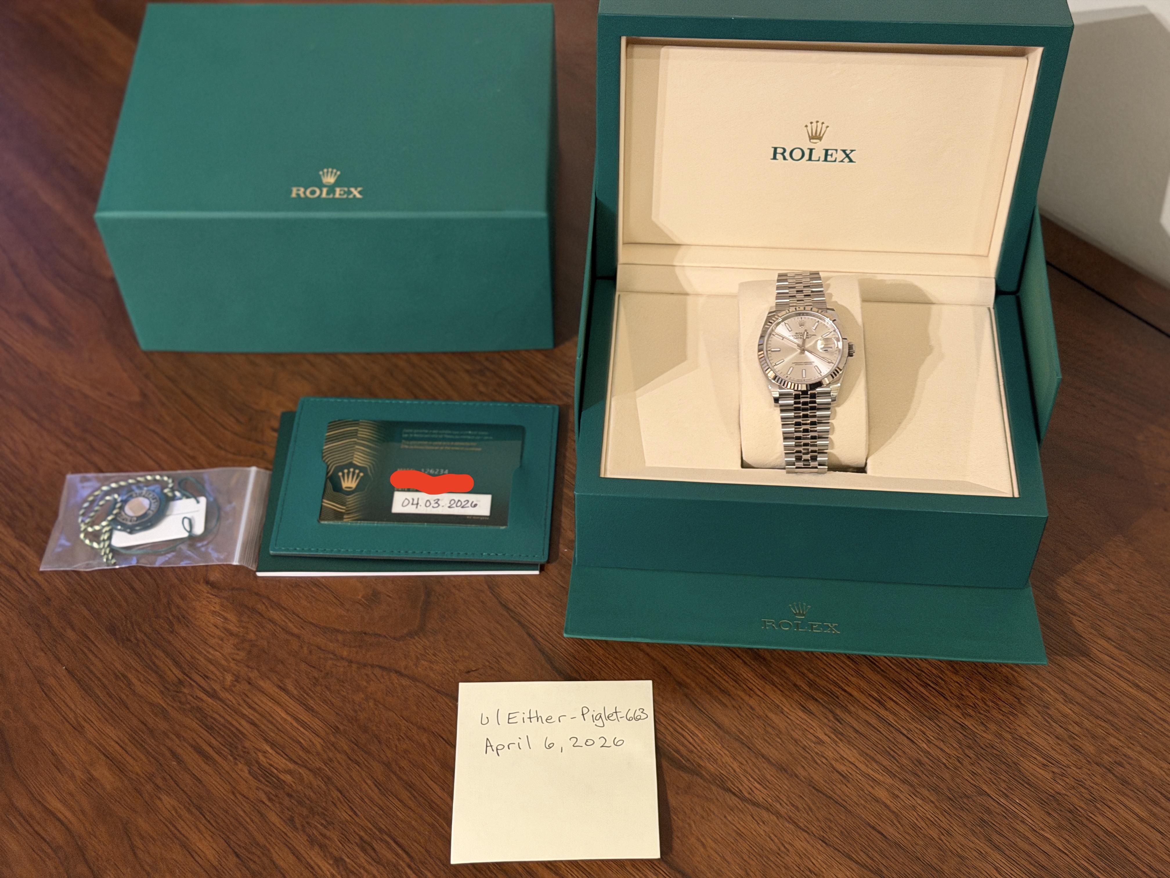 [WTS] Rolex Datejust 36 - Ref. 126234 - Silver Dial / Fluted / Jubilee - Mint/Unworn (March 2026)
