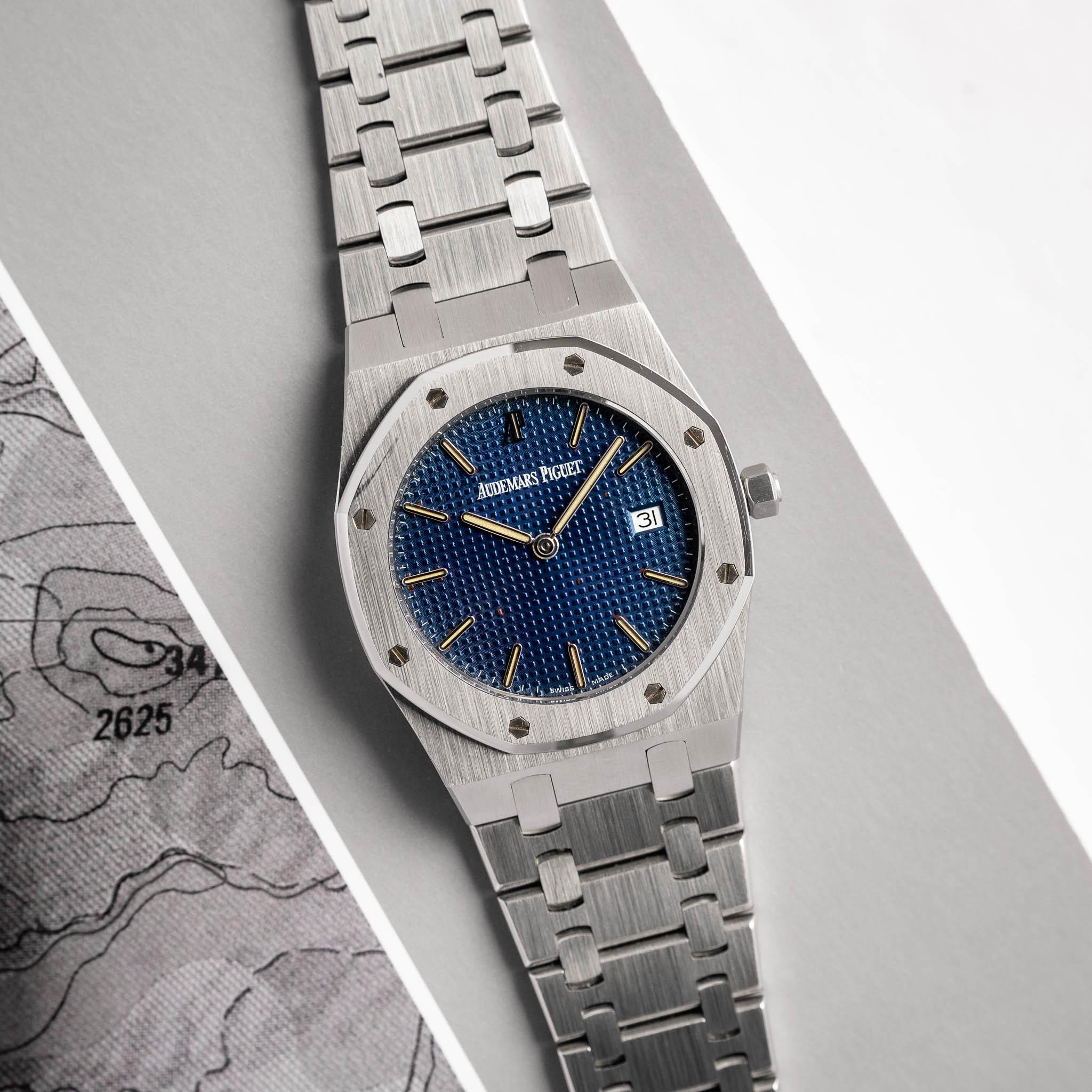 **SPECIFICATIONS** **Brand:** Audemars Piguet **Model:** Royal Oak 120th Anniversary LE **Reference:** 56975ST **Year:** 1995 **Case Number:** D64299 **Case Material:** Stainless steel **Diameter:** 33 mm **Lug Width:** 23.5 mm **Thickness:** 5.8 mm **Lug-to-Lug:** 41.8 mm **Dial:** Blue **Lume:** Tritium **Crystal:** Sapphire **Movement:** Quartz **Caliber:** AP 2712 **Bracelet/Strap:** Audemars Piguet stainless steel bracelet **Max Wrist Size:** 6.875 in (19 li...
