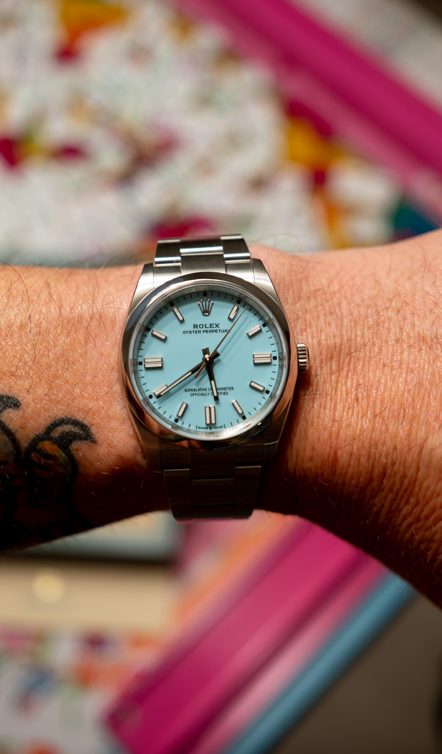 [Timestamp](https://i.imgur.com/63RJ46h.jpeg) # The Watch Up for sale is a 2025 Rolex Oyster Perpetual 36 ref. 126000 in the highly sought-after turquoise (“Tiffany blue”) dial. This is one of the most recognizable modern OP configurations Rolex has released—clean, no-date symmetry with a dial that actually stands out in person. * **Condition:** Mint – extremely clean overall ( looks like new ) * **Dial:** Turquoise / Tiffany blue * **Case Size:** 36mm * **Movement:** Rolex Cal. 3230 (70hr...