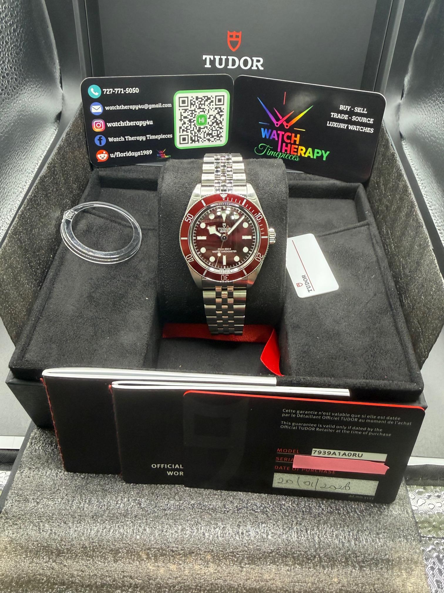**F/S: 2026 New Tudor Black Bay 58 Burgundy Jubilee 1/26 Stickers Ref# M7939A1A0RU** **Specs:** \* Burgundy domed dial w/applied hour markers \* Automatic self-winding \* 39mm \* Jubilee style bracelet with T-Fit clasp \* 200M Water Resistance \* 65-hour power reserve \* MT5400-U COSC/METAS **Includes**: Warranty card 1/26, double boxed, booklets and tag. **Condition:** 10/10, unworn, some stickers, very faint hairline on the polished center clasp. **Price: $4,299.00+ Insured shippi...