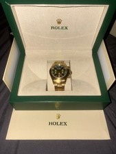Rolex Style Gold Metal Wristwatch Green Analog Round Polished with Original Box