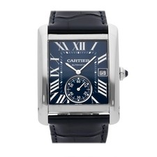 Cartier Tank MC Steel Automatic 44mm Rectangle Blue Dial Strap Watch WSTA0010