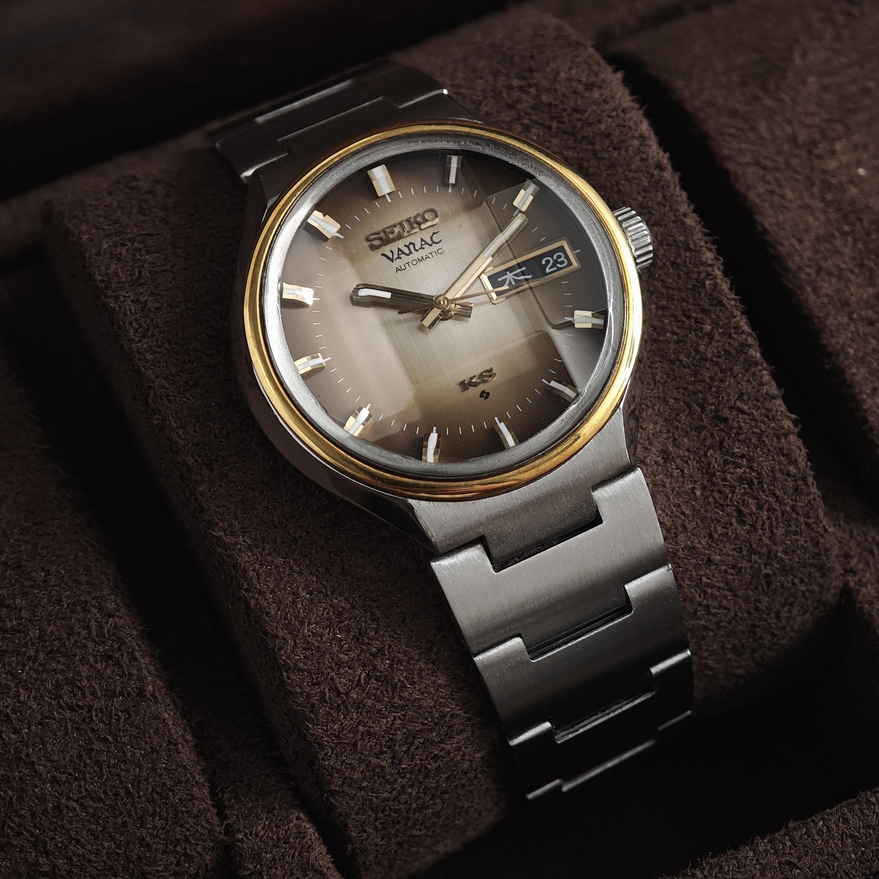 ![[WTS] Vintage Seiko 1973 KS Vanac 5626-7220 Brown Linen Dial | Faceted Crystal | Hi-Beat 28800 BPH | Serviced | $500 (Shipping Included)](https://sxdtrcenjzhqcznhokgy.supabase.co/storage/v1/object/public/reference-images/reddit/1sit2py.jpg)