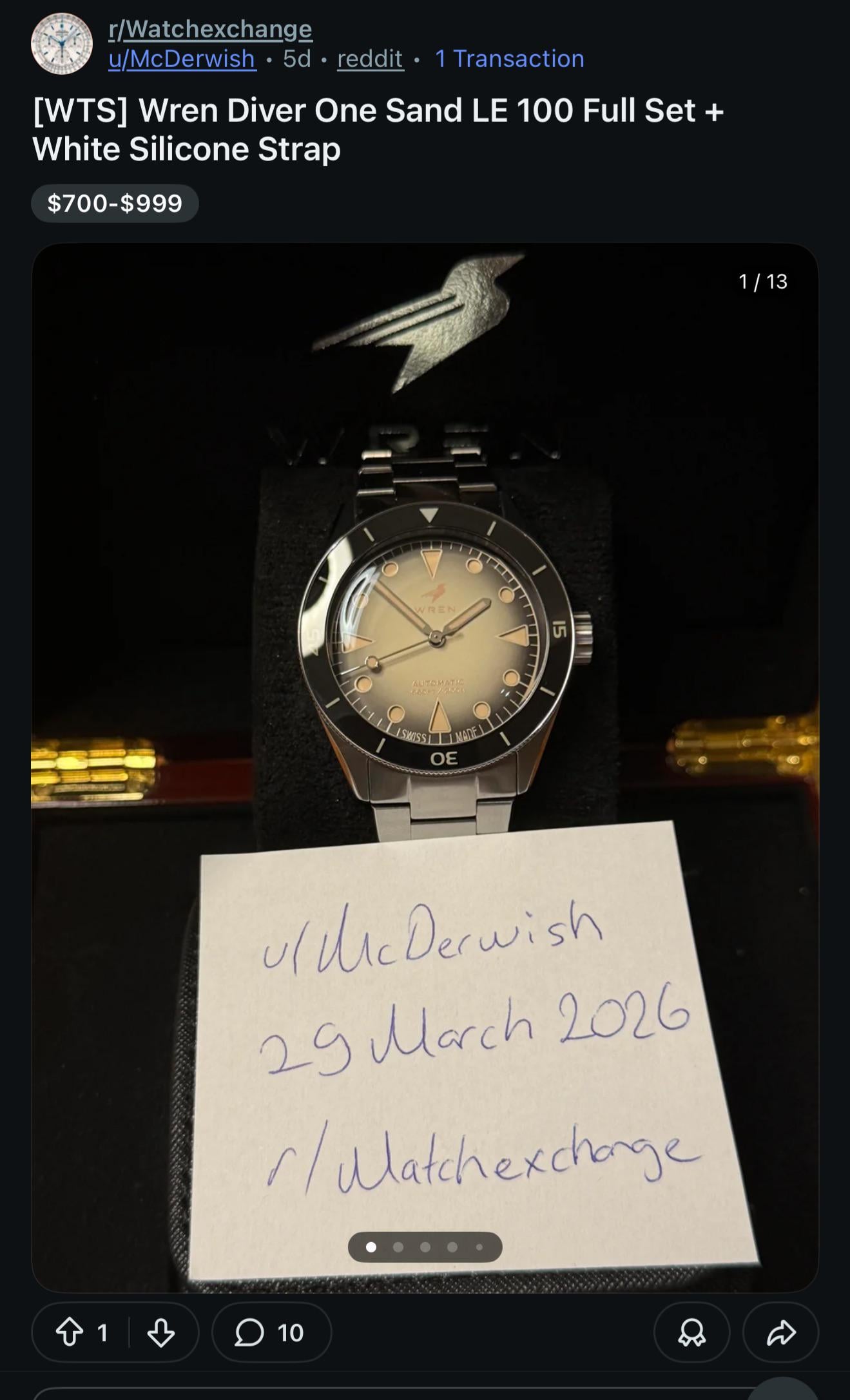 [WTS] Price update $650 Wren Diver One Sand 91/100